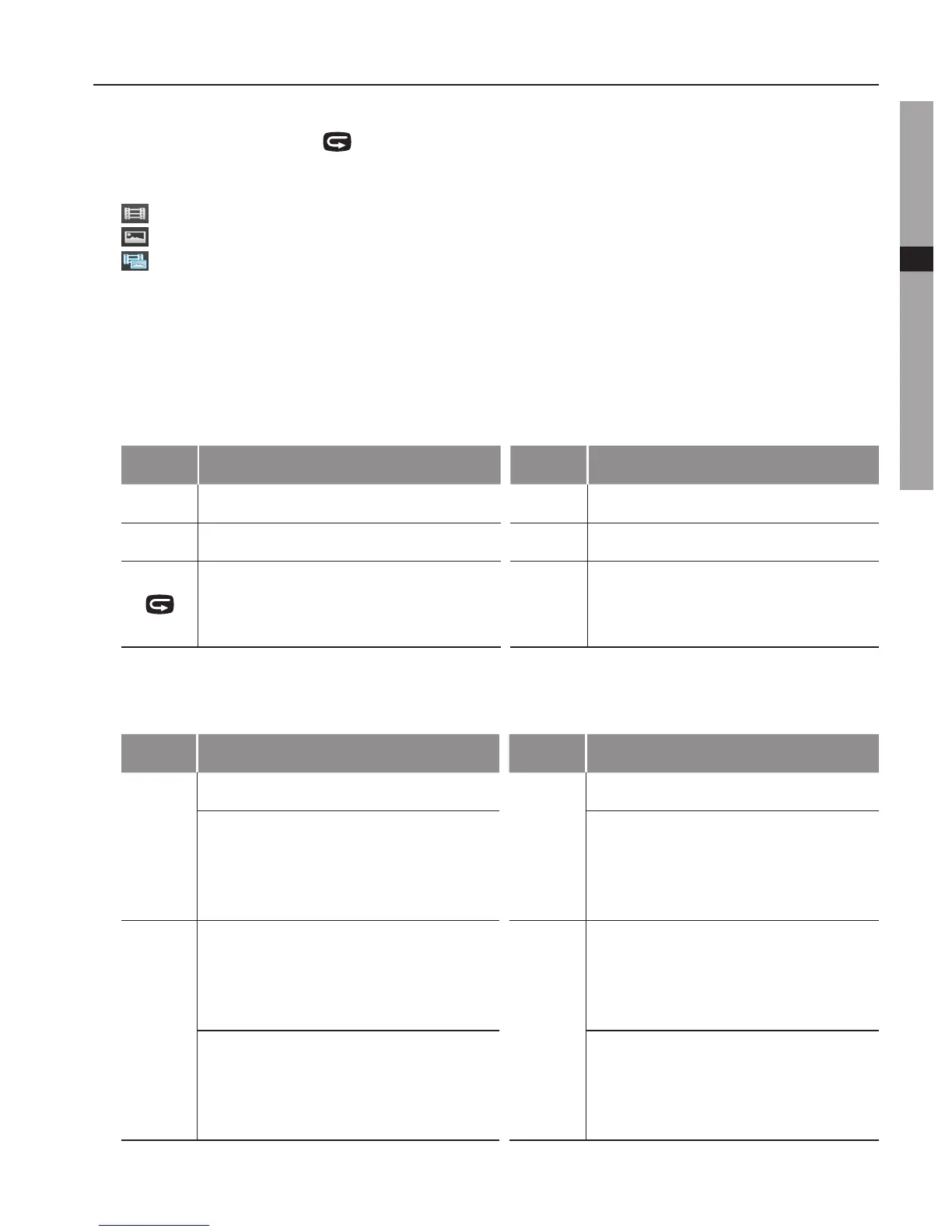 - Lors de la lecture de fichiers vidéo, les fonctions des différents boutons sont répertoriées