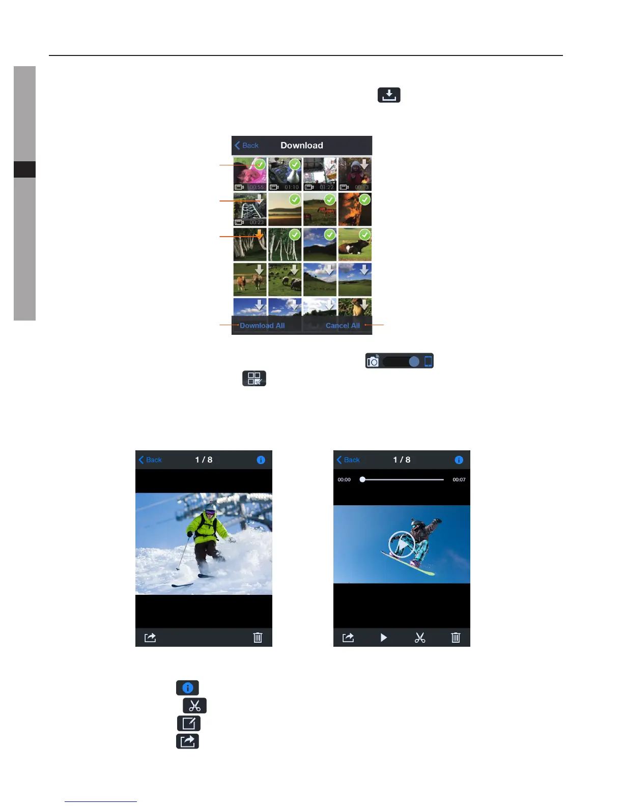 Cliquez sur l'icône " " pour partager le fichier sélectionné sur les réseaux sociaux.