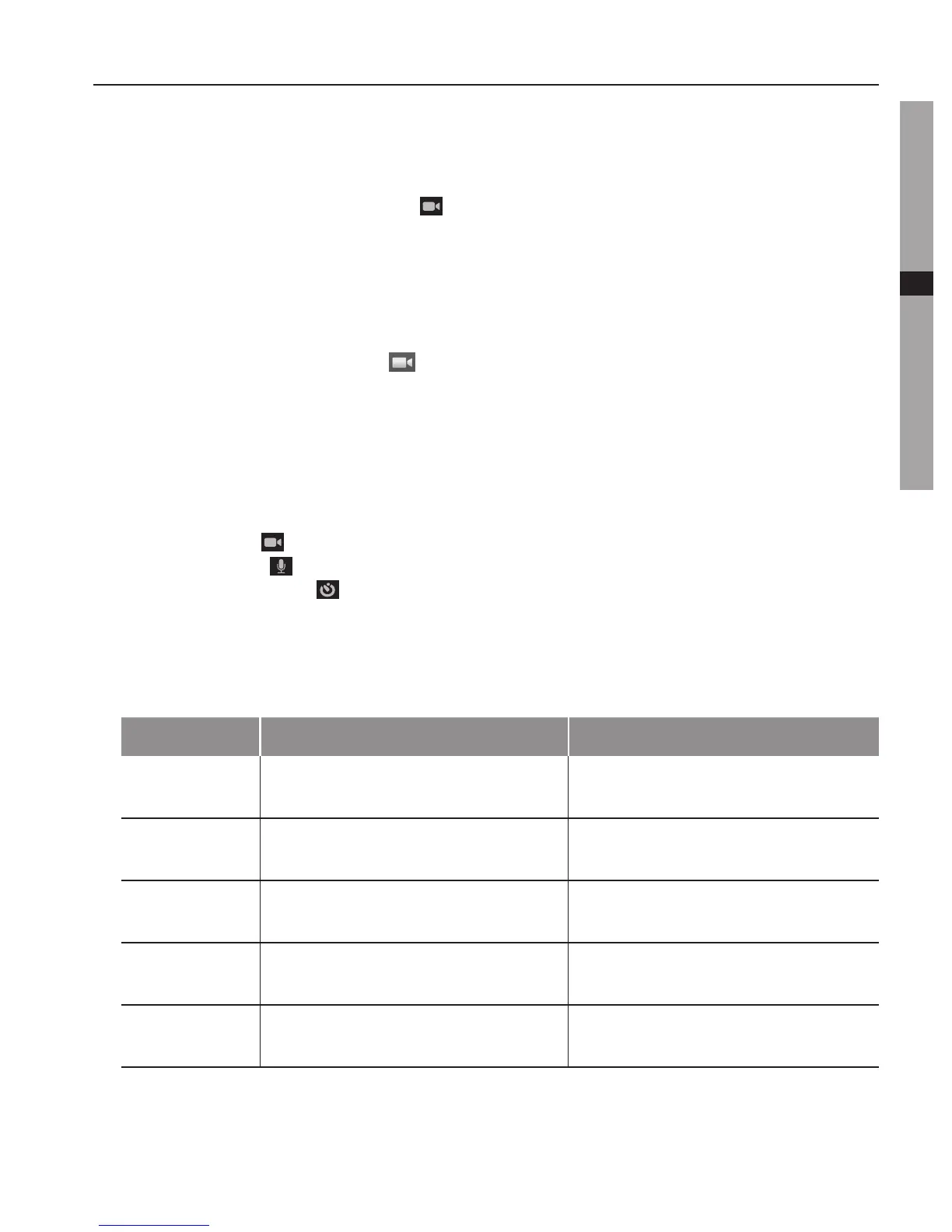 De optionele resoluties voor video opnames staan hieronder vermeld
