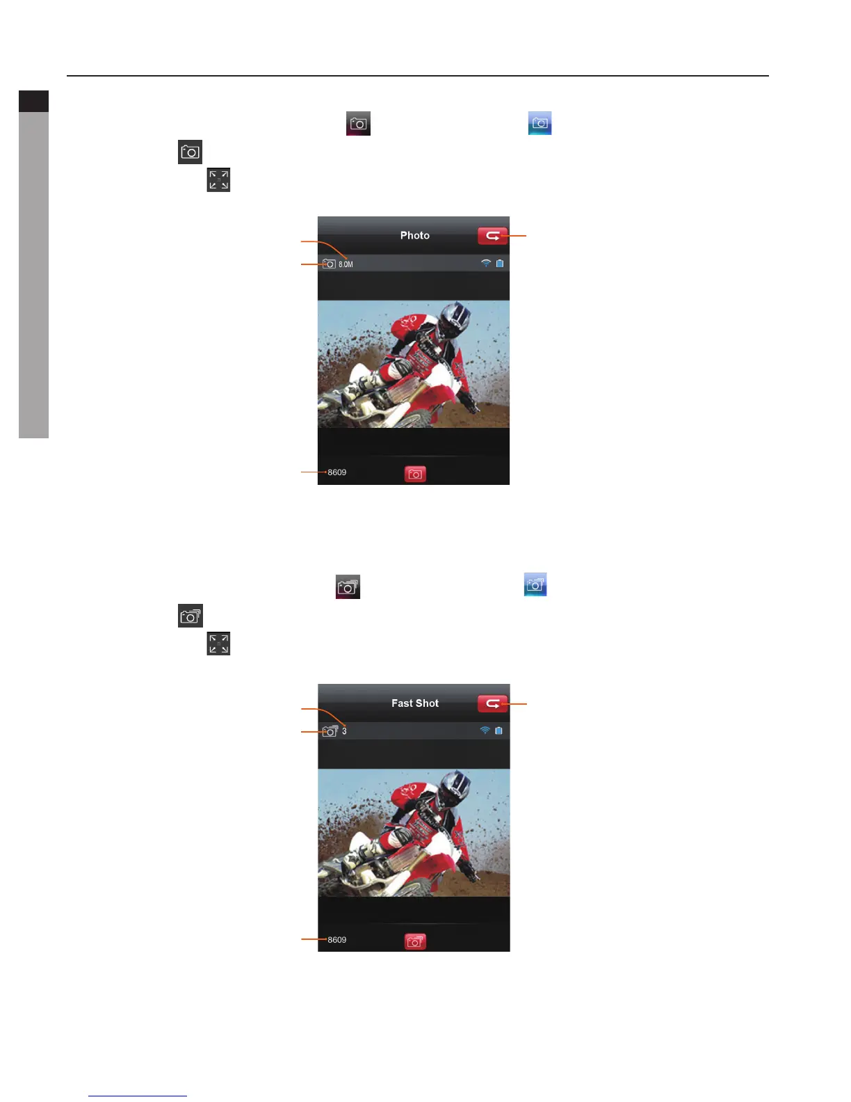 - Click the Fast shot mode icon " " , it will turn blue " ". The current state icon will
