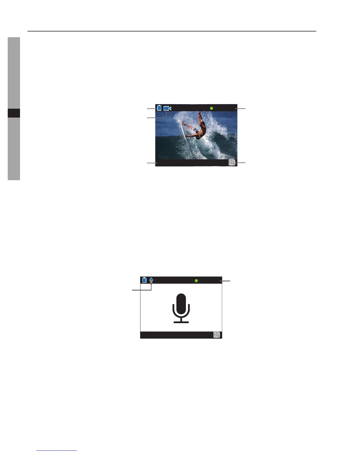 - Systemwydajednorazowyimpuls,wskazującnarozpoczęcienagrywania.Poniższywyświetlacz