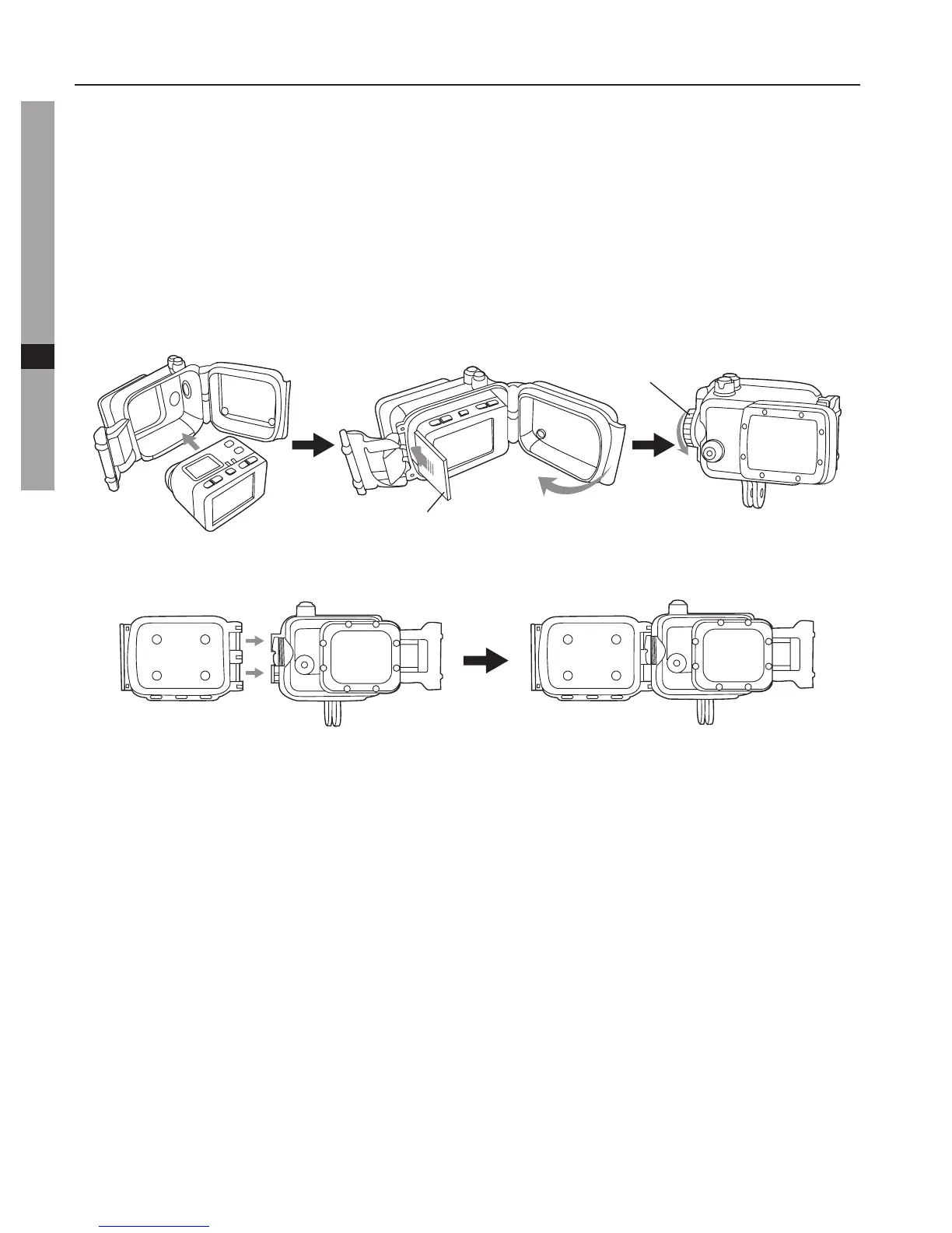 Følg disse trin for at isætte S50+ i det vandtætte kamerahus:
