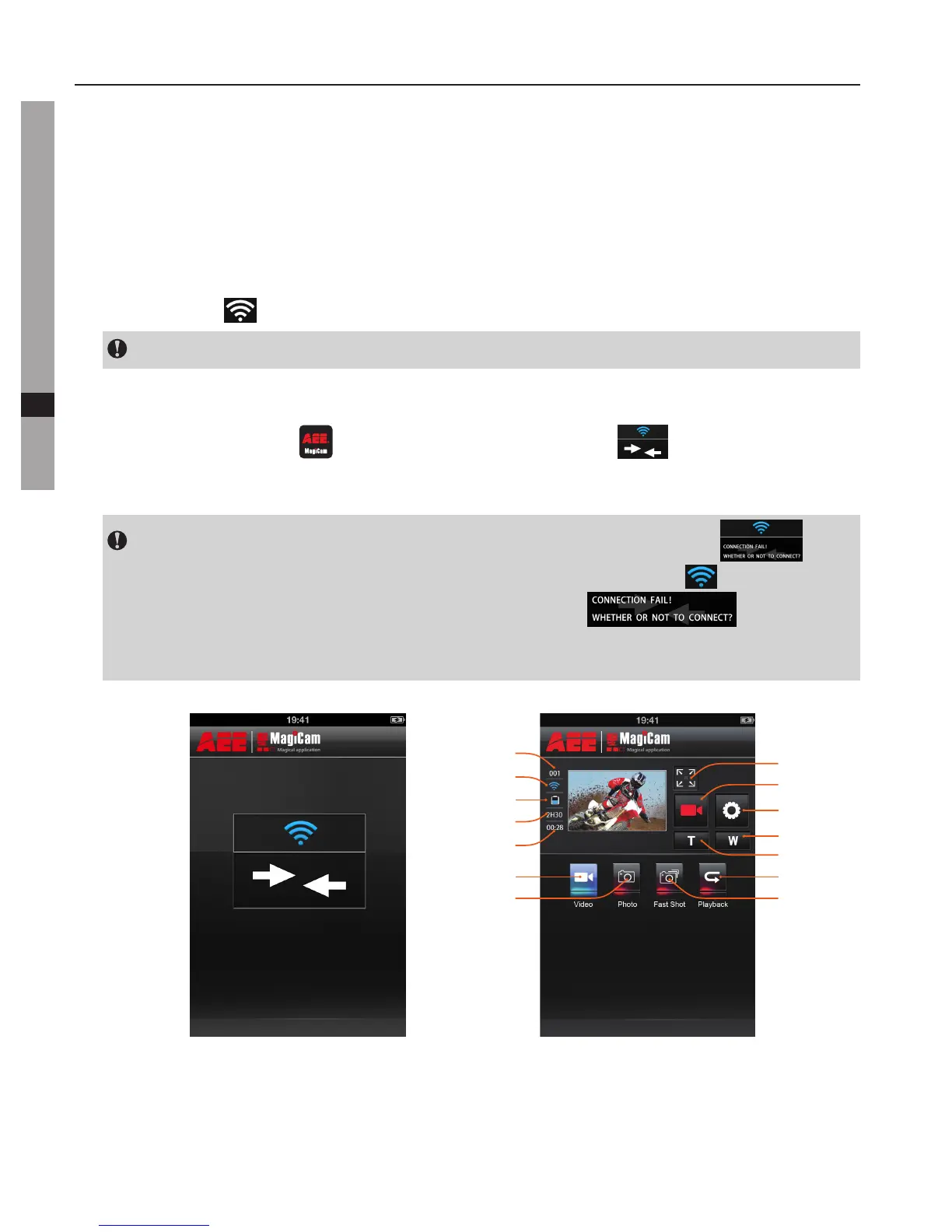 b.PåenmobilenhetsökerduefterWiFi-hotspot,väljnätverk"AEEMagicam"ochanslutdig