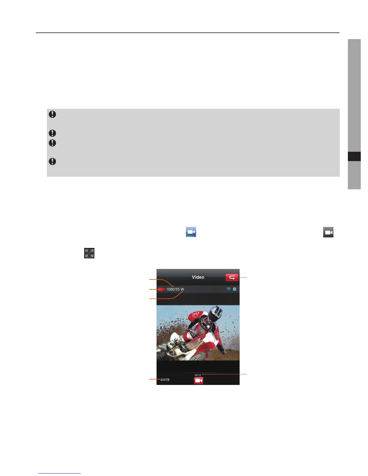 - Klicka på ikonen för videoinspelningsläge " ". Ikonen för aktuell status visas som " ",