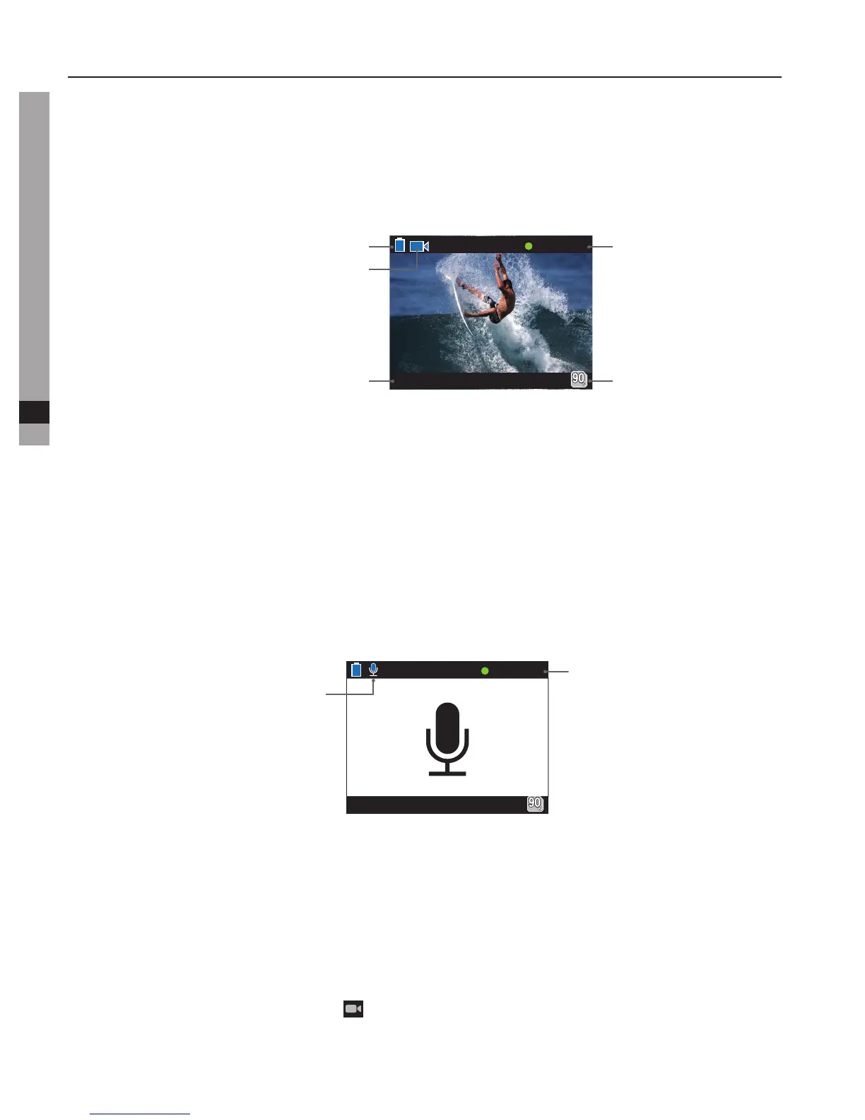 - Kameraetvilavgietlydsignalforåindikeredenatlydopptaketharstartet.