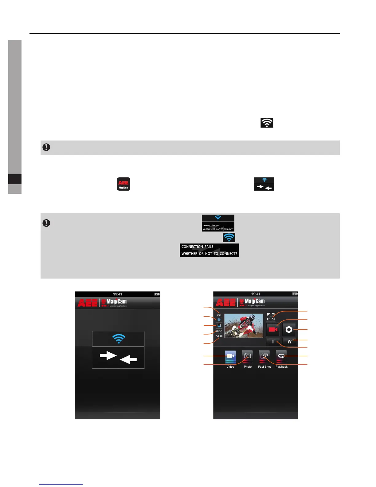 b.SøketterWi-Fihotspotpåenmobilenhet,velg"AEEMagicam"nettverkogblimed