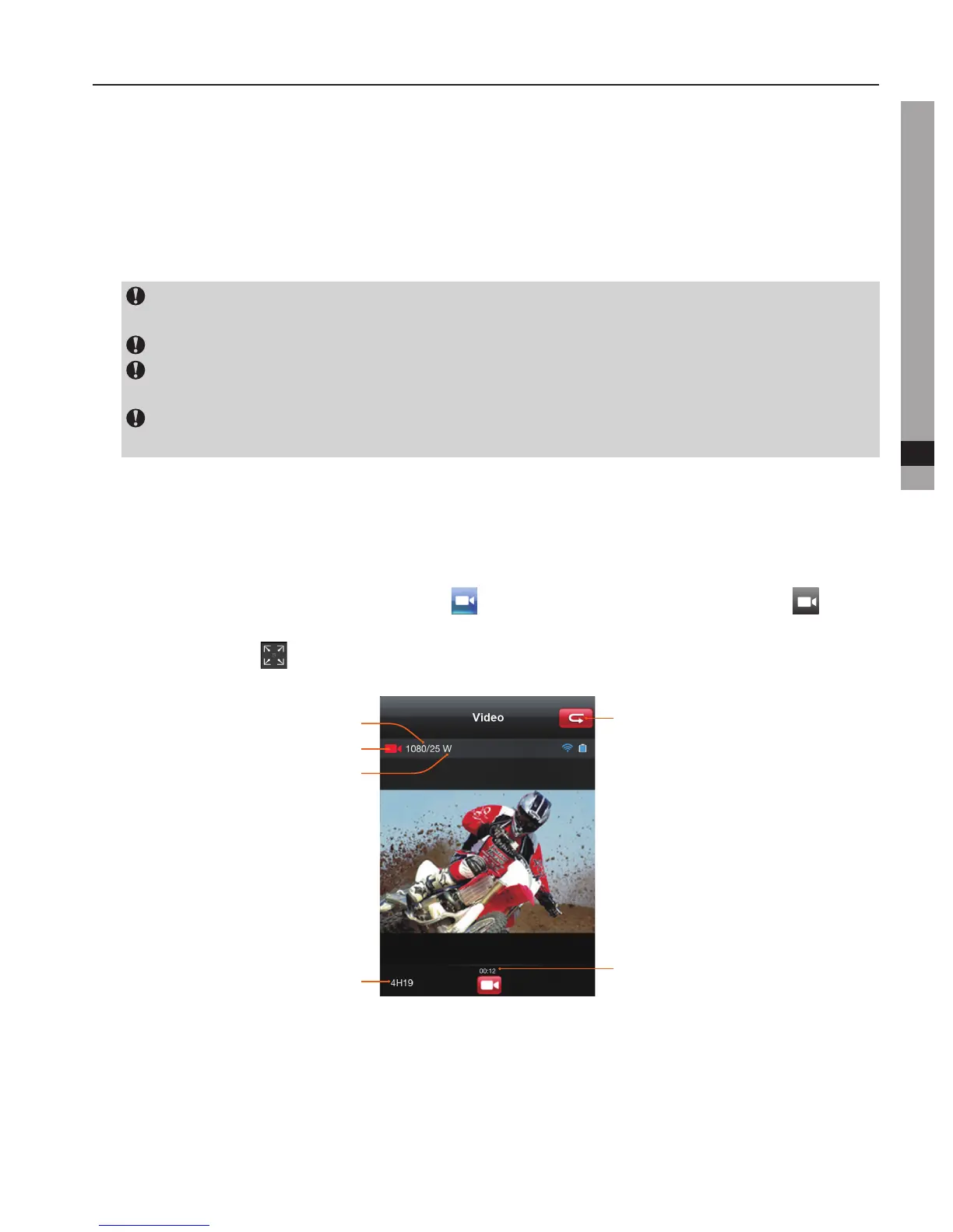- KlikkpåVideoopptaksmodus-ikonet" ".Gjeldendestatusikonvilvisessom" ", klikk