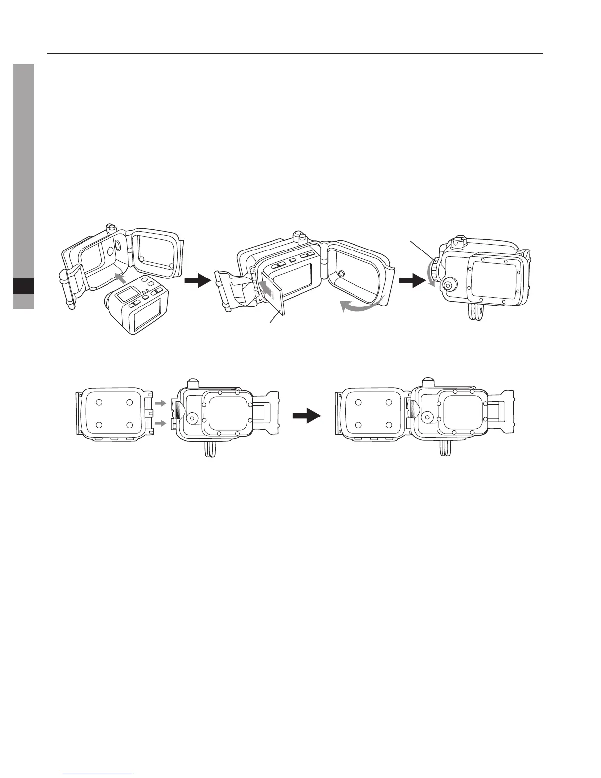 Følg disse trinnene for å sette S50+ inn i det vanntette kabinettet: