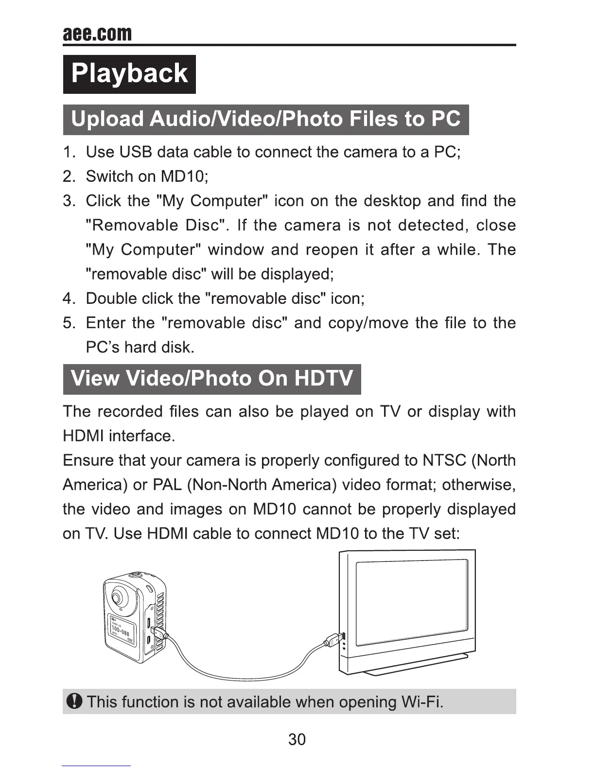 AEE MD10 - Wi-Fi; Download a Wi-Fi APP; Wi-Fi Starting and Connection
