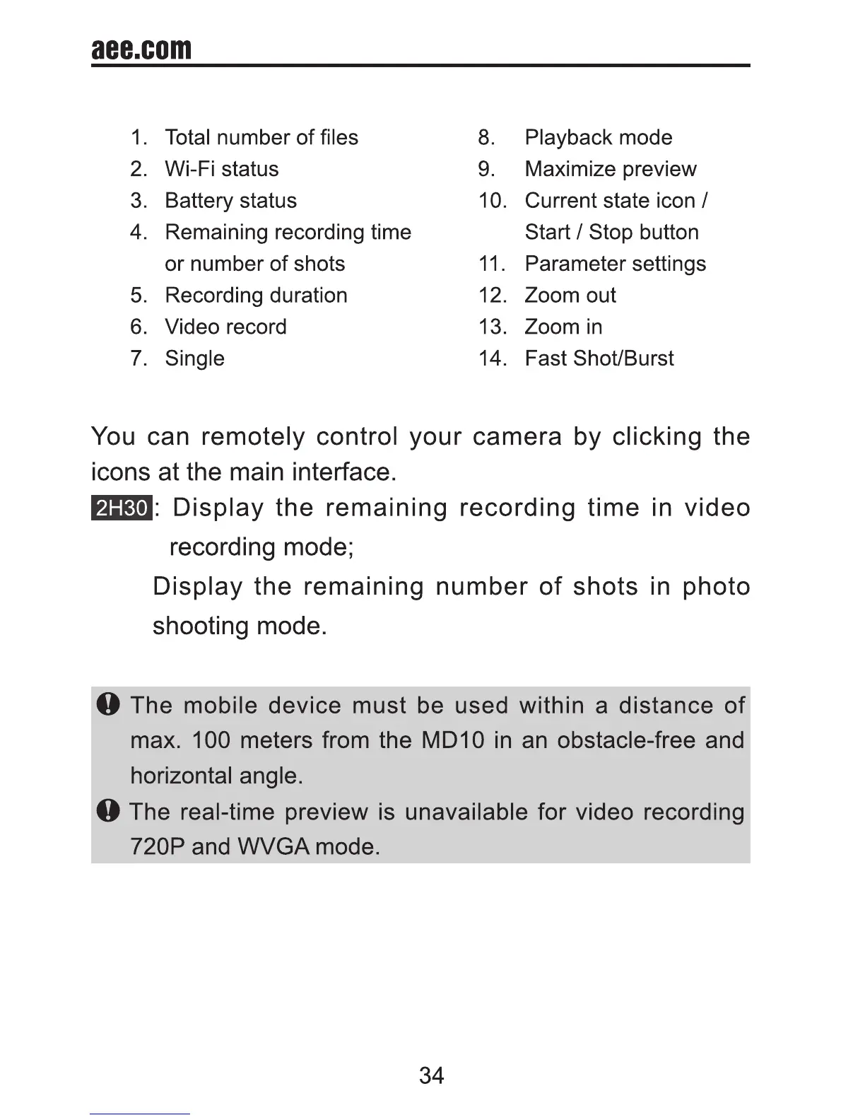 AEE MD10 - Operating Instructions for Wi-Fi Control Interface; Video Recording