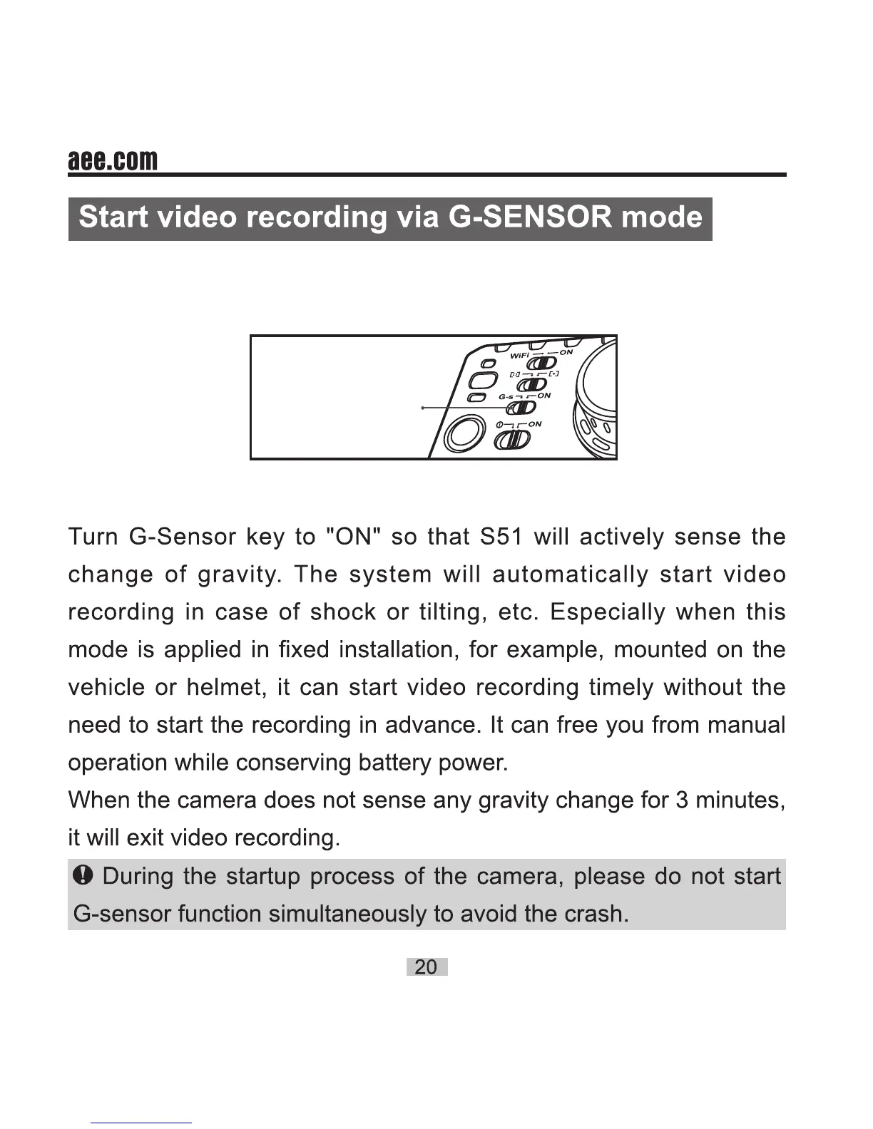 AEE S51 - Start video recording via G-SENSOR mode