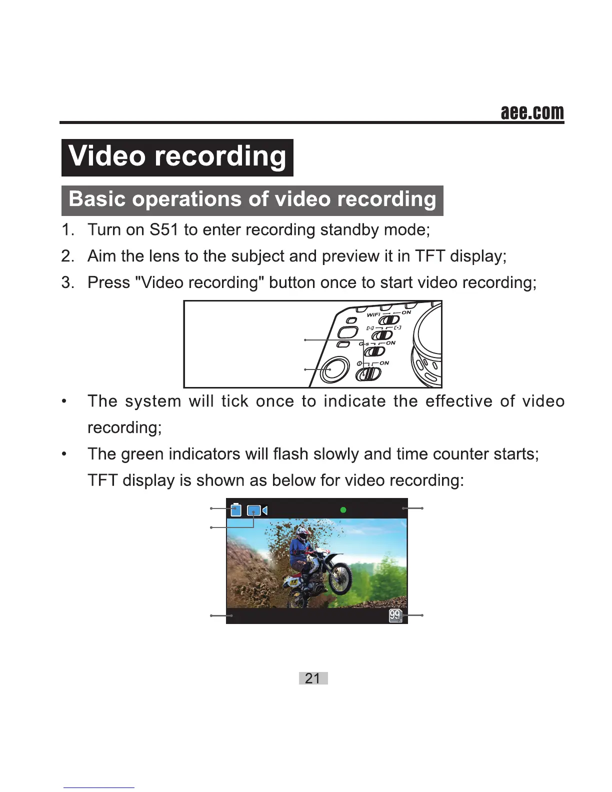 AEE S51 - Video recording; Basic operations of video recording