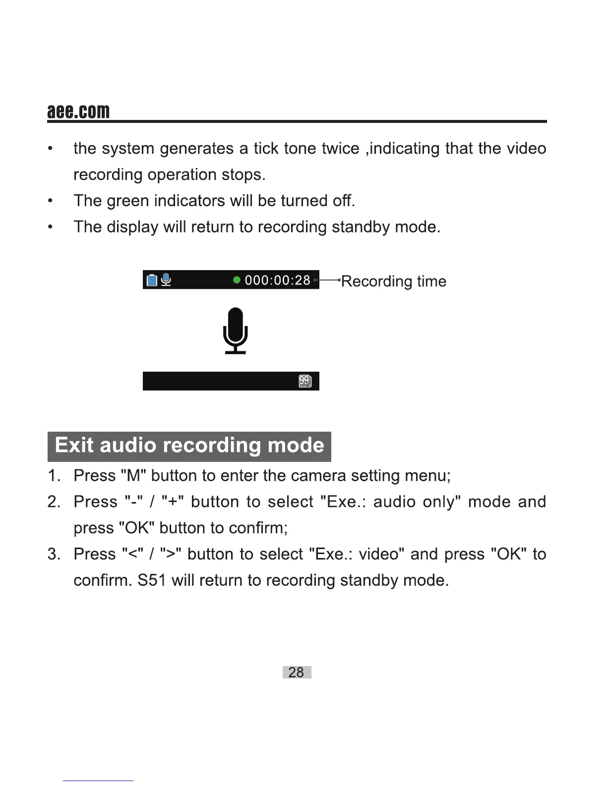 AEE S51 - Exit audio recording mode