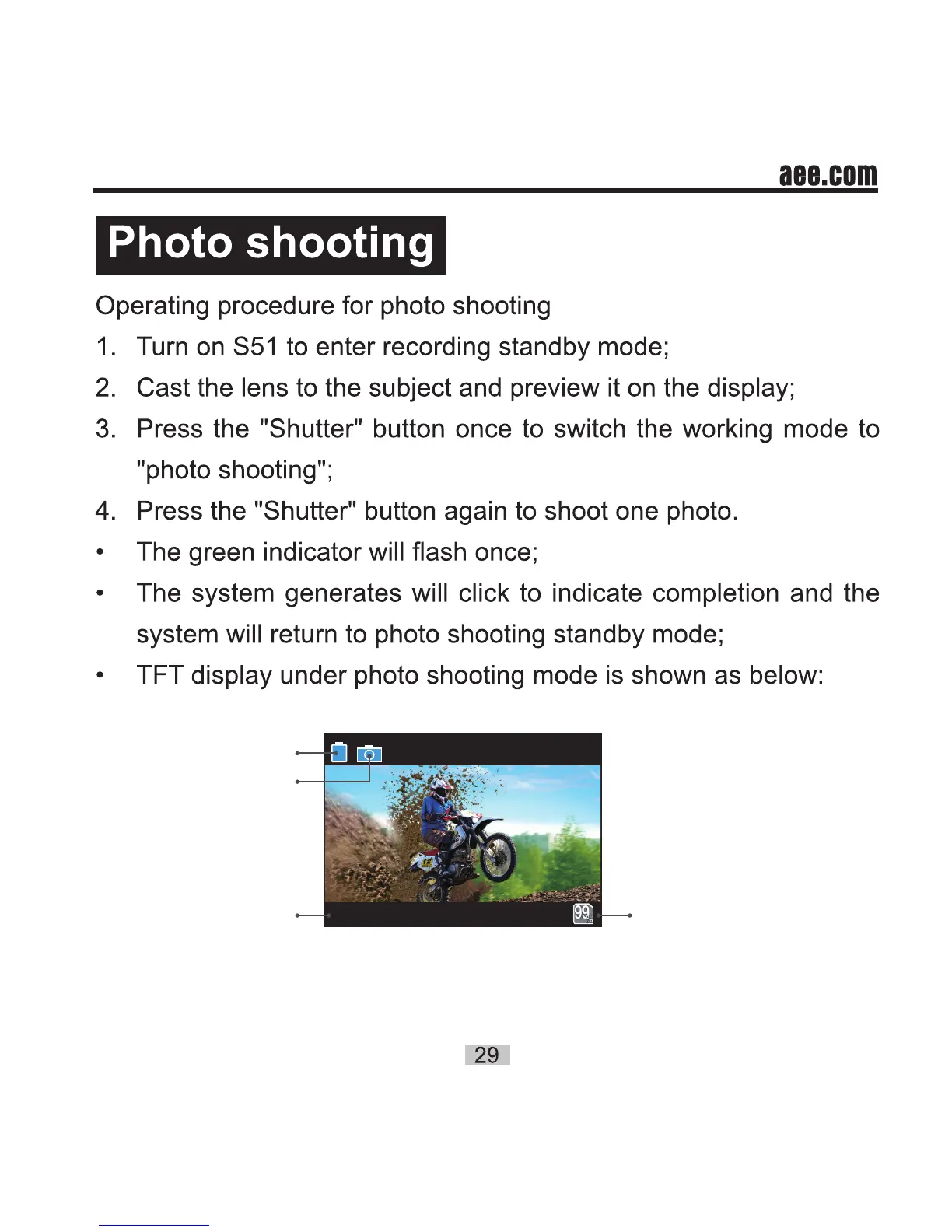 AEE S51 - Photo shooting; Operating procedure for photo shooting