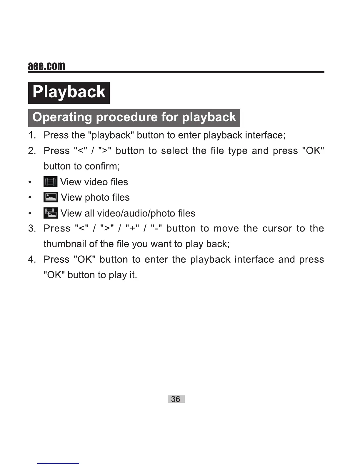 AEE S51 - Playback; Operating procedure for playback