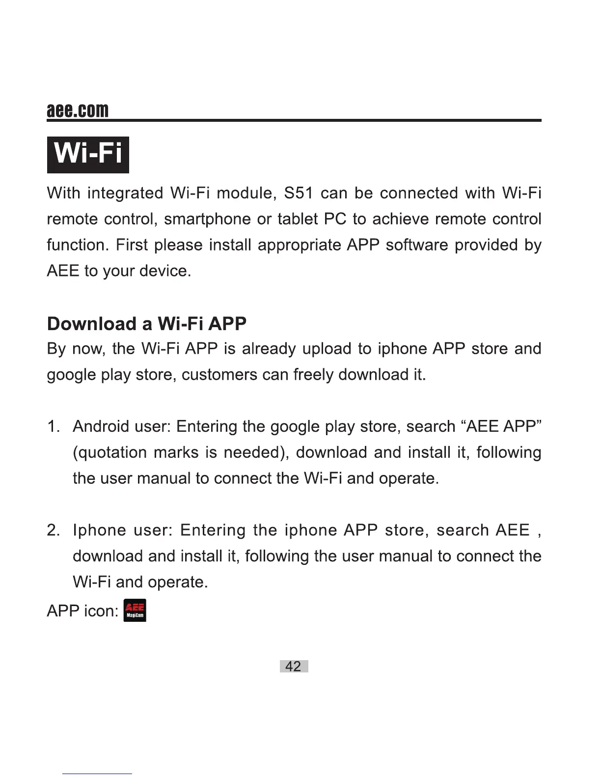 AEE S51 - Wi-Fi; Download a Wi-Fi APP