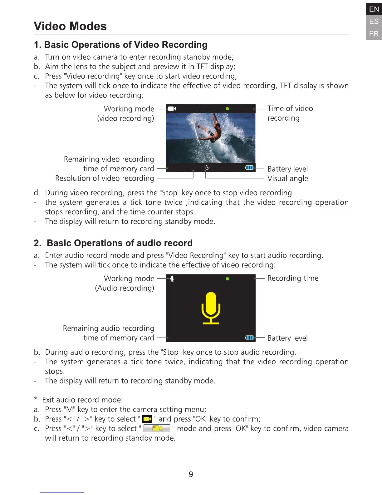 AEE S60 PLUS - Video Modes; Basic Operations of Video Recording; Basic Operations of Audio Records