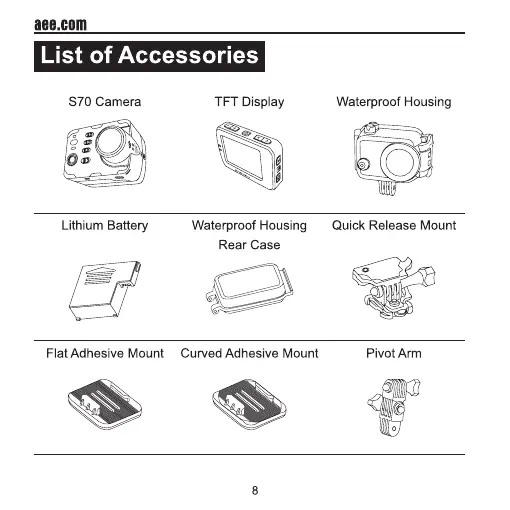 AEE S70 - Accessories and Specifications