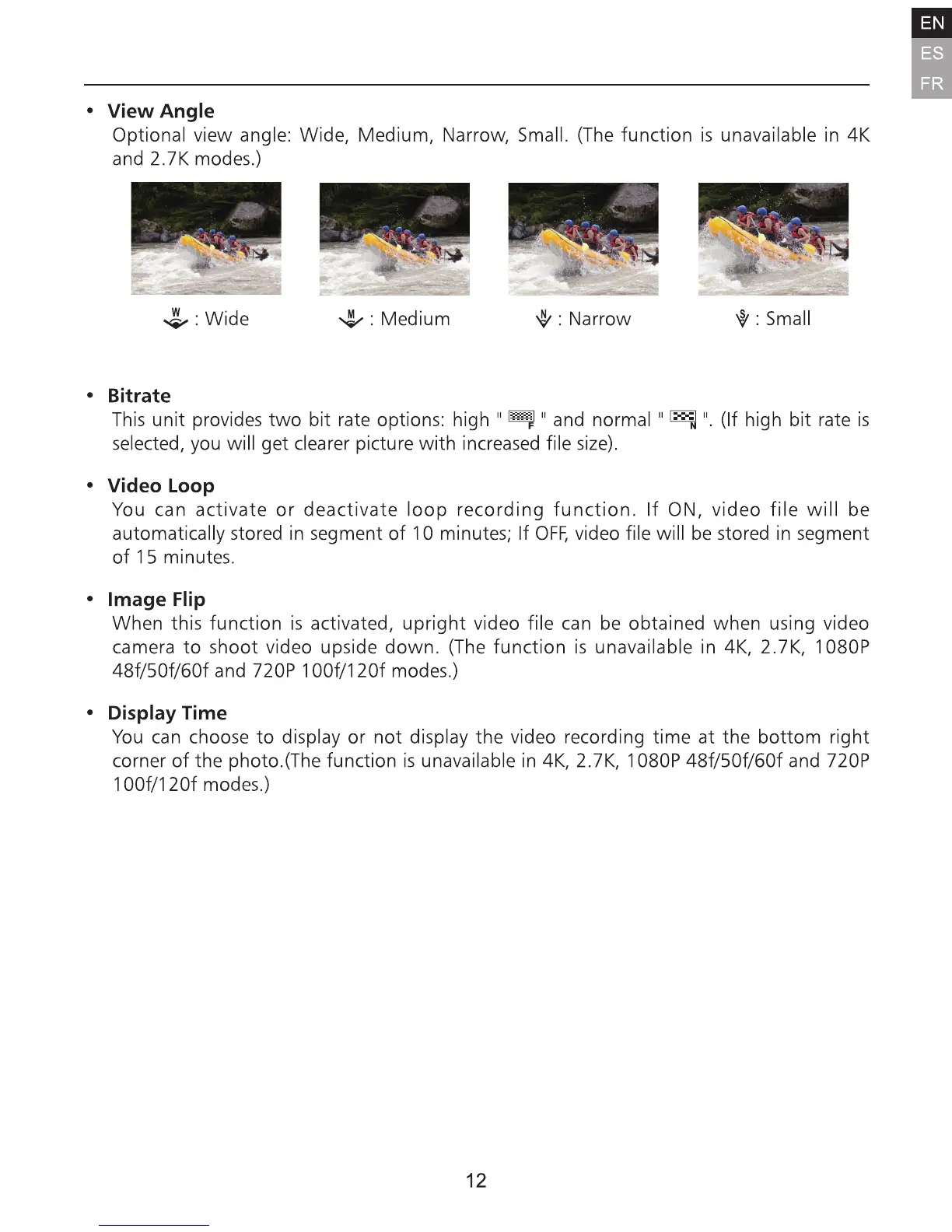 AEE S71T Plus - View Angle; Bitrate; Video Loop; Image Flip