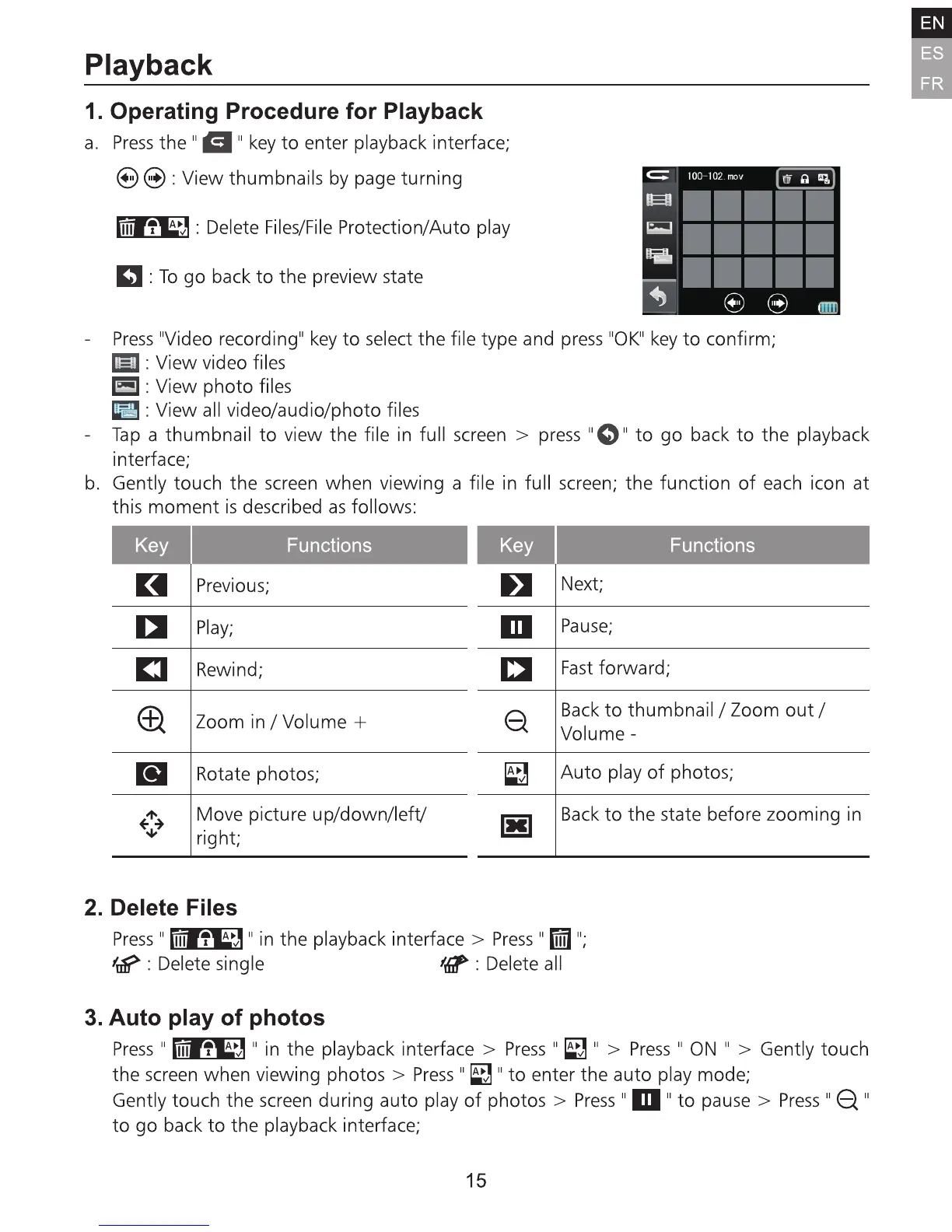 AEE S71T Plus - Playback; Operating Procedure for Playback; Delete Files