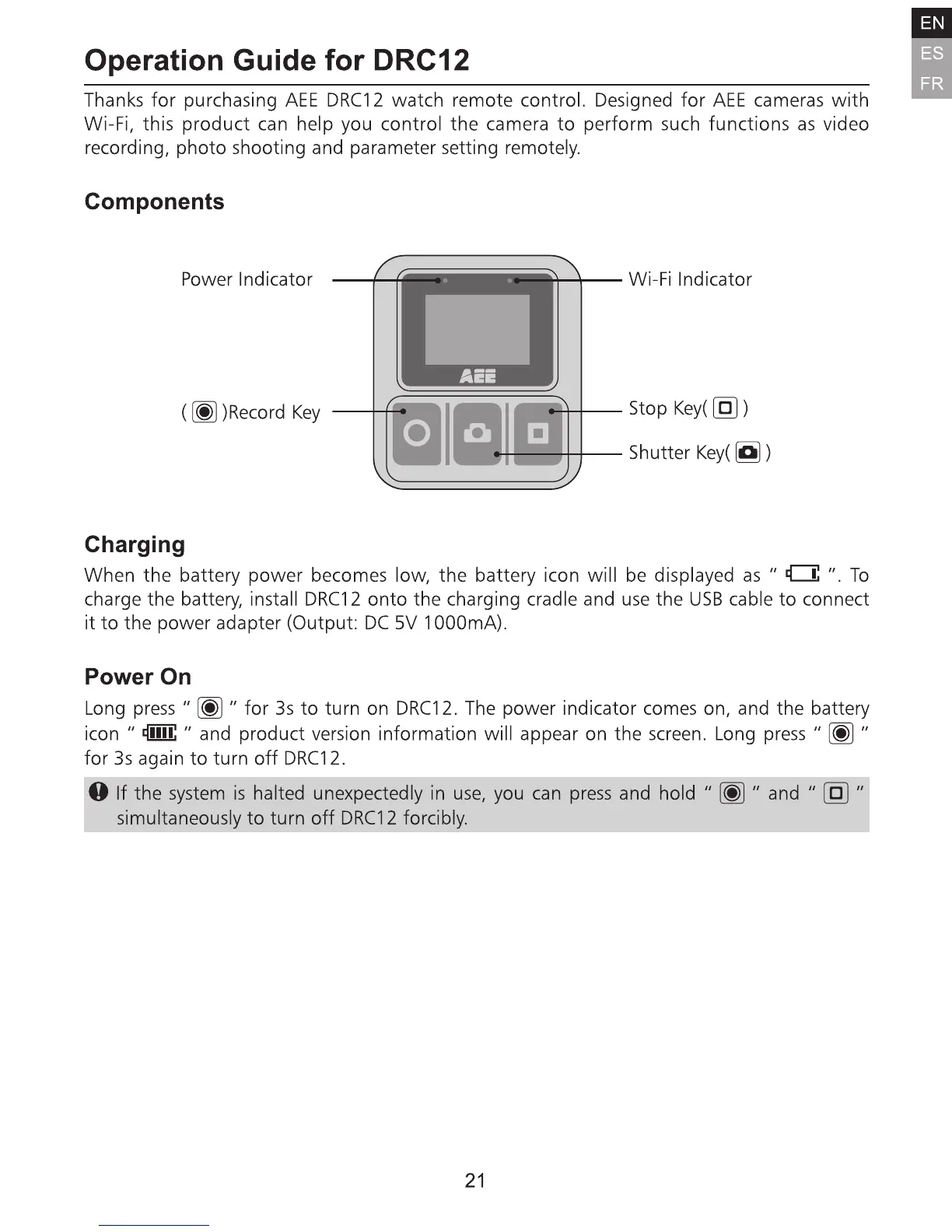 AEE S71T Plus - Operation Guide for DRC12; Components and Setup
