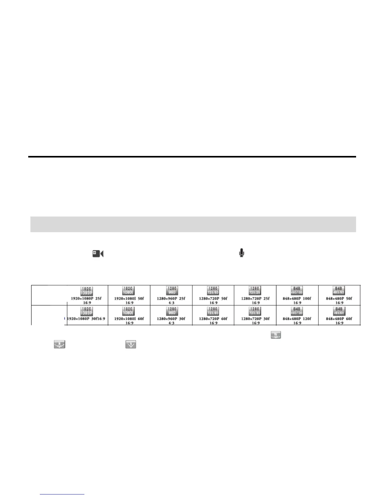 Note: After power-on, the video camera adopts all the preset settings, except for audio recording mode. You