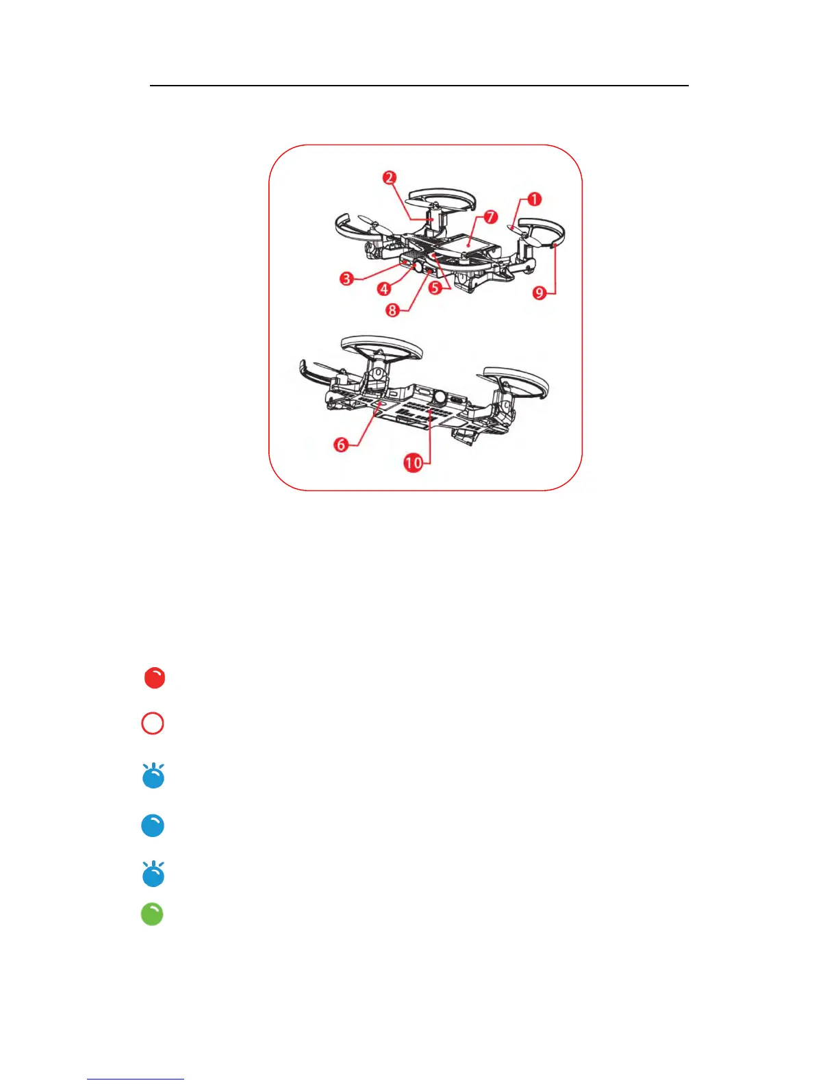 ① Propellers (Prop A/B) ② Motors ③ Status LED Indicator ④ Camera