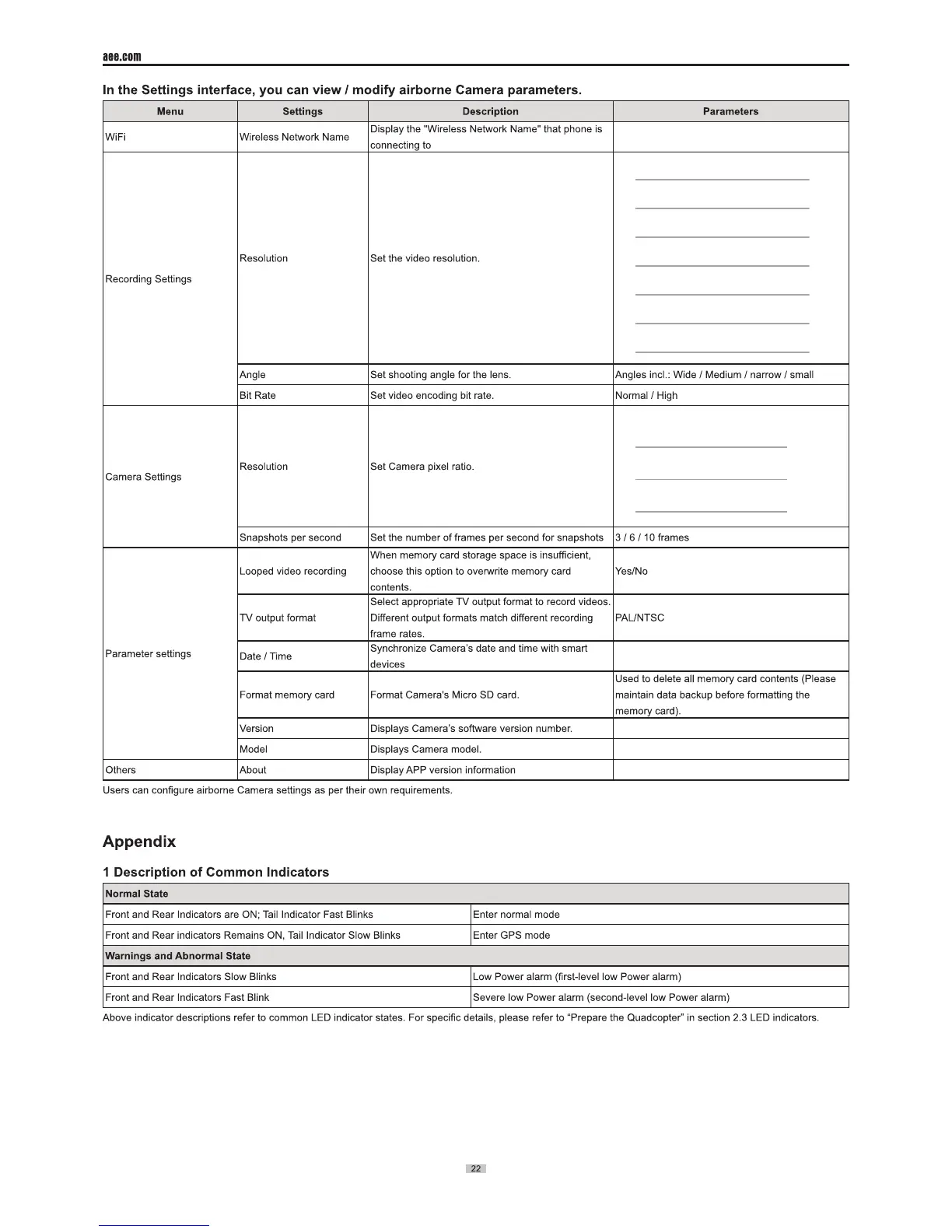 AEE Toruk AP10 - Specifications; Common Troubleshooting