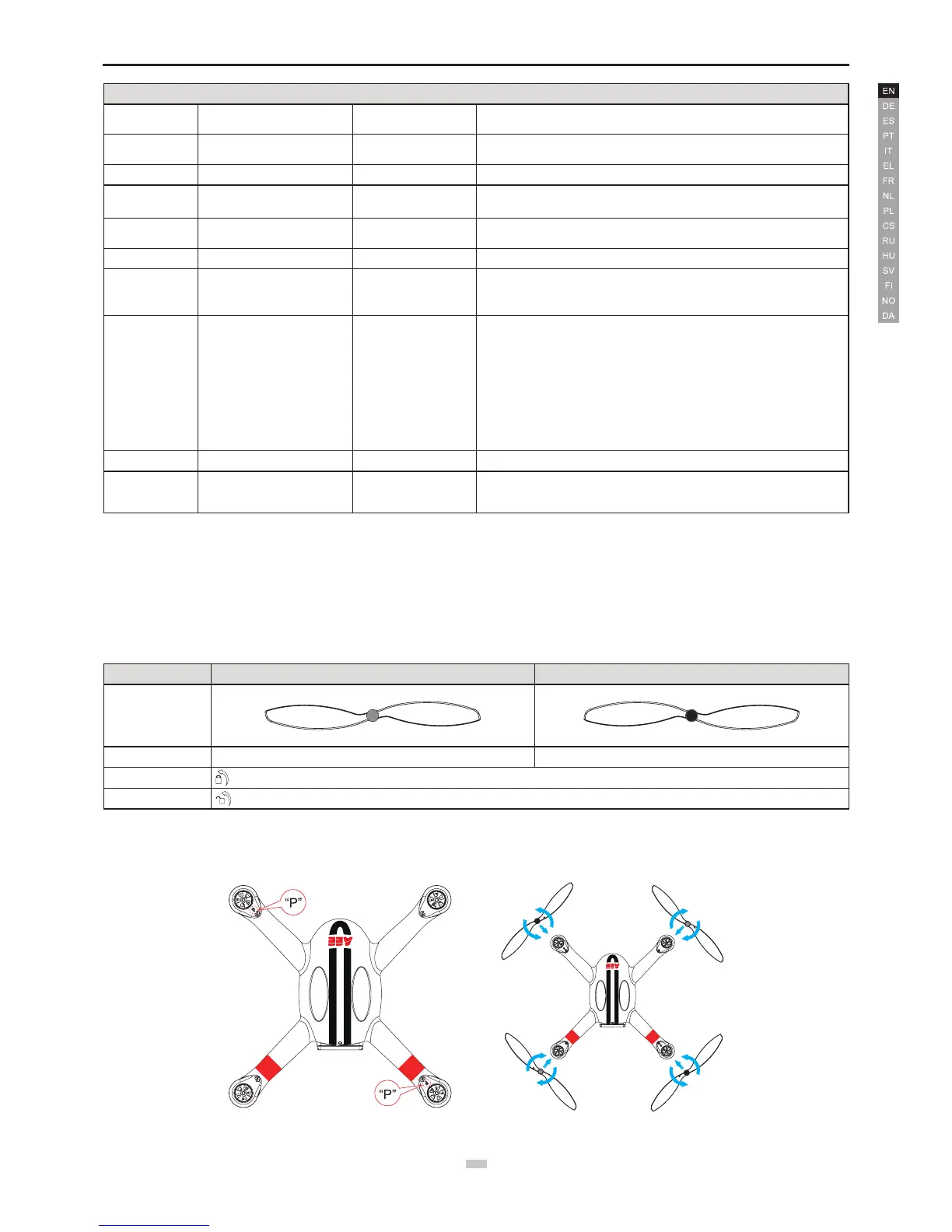 propellers with black nuts to motor shafts with "P" marks. Tighten propellers as per the appropriate locking direction.