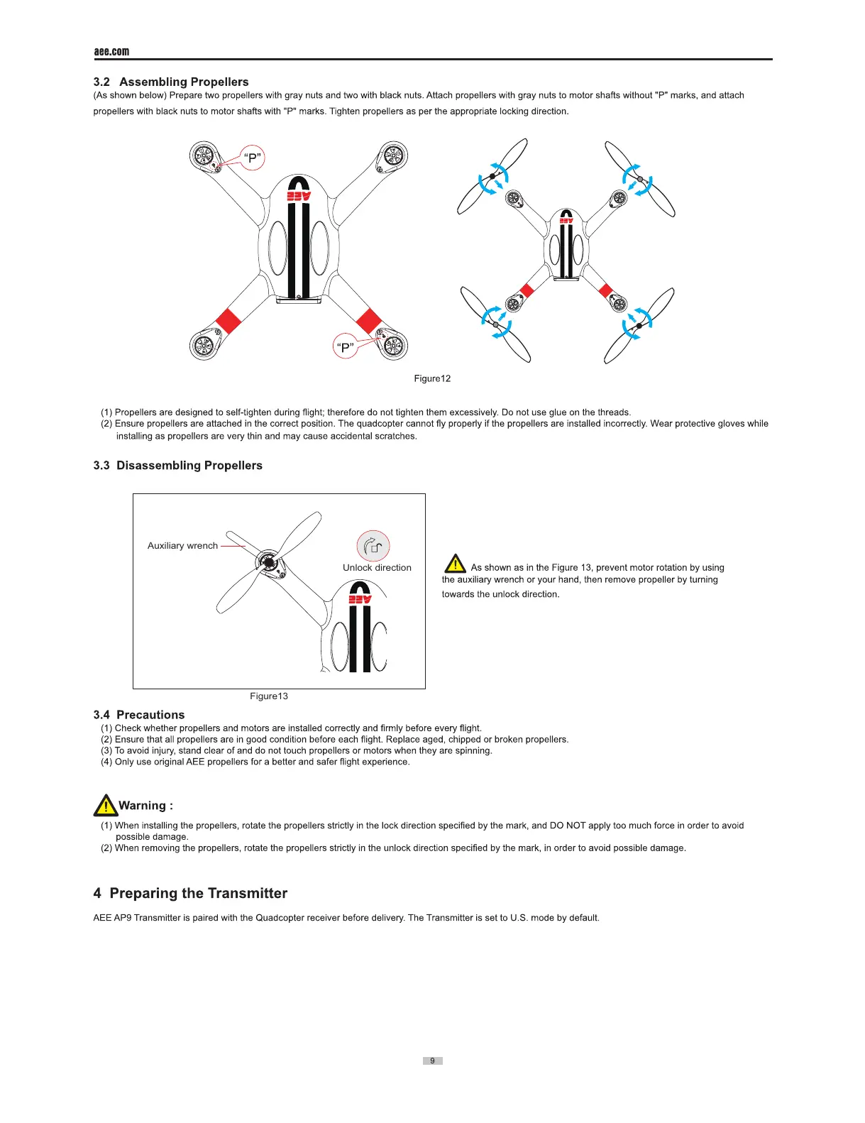 AEE Toruk AP9 - Propeller Assembly and Disassembly; Transmitter Setup