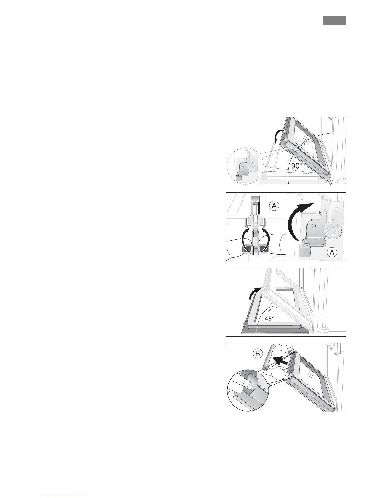 4. Take hold of the door trim(B) on the upper edge