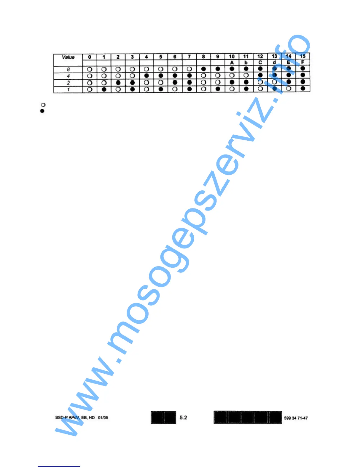 Az alábbi táblázat a bináris kódok konvertálására használható a LED-ek által mutatott megfelelo betu és decimális