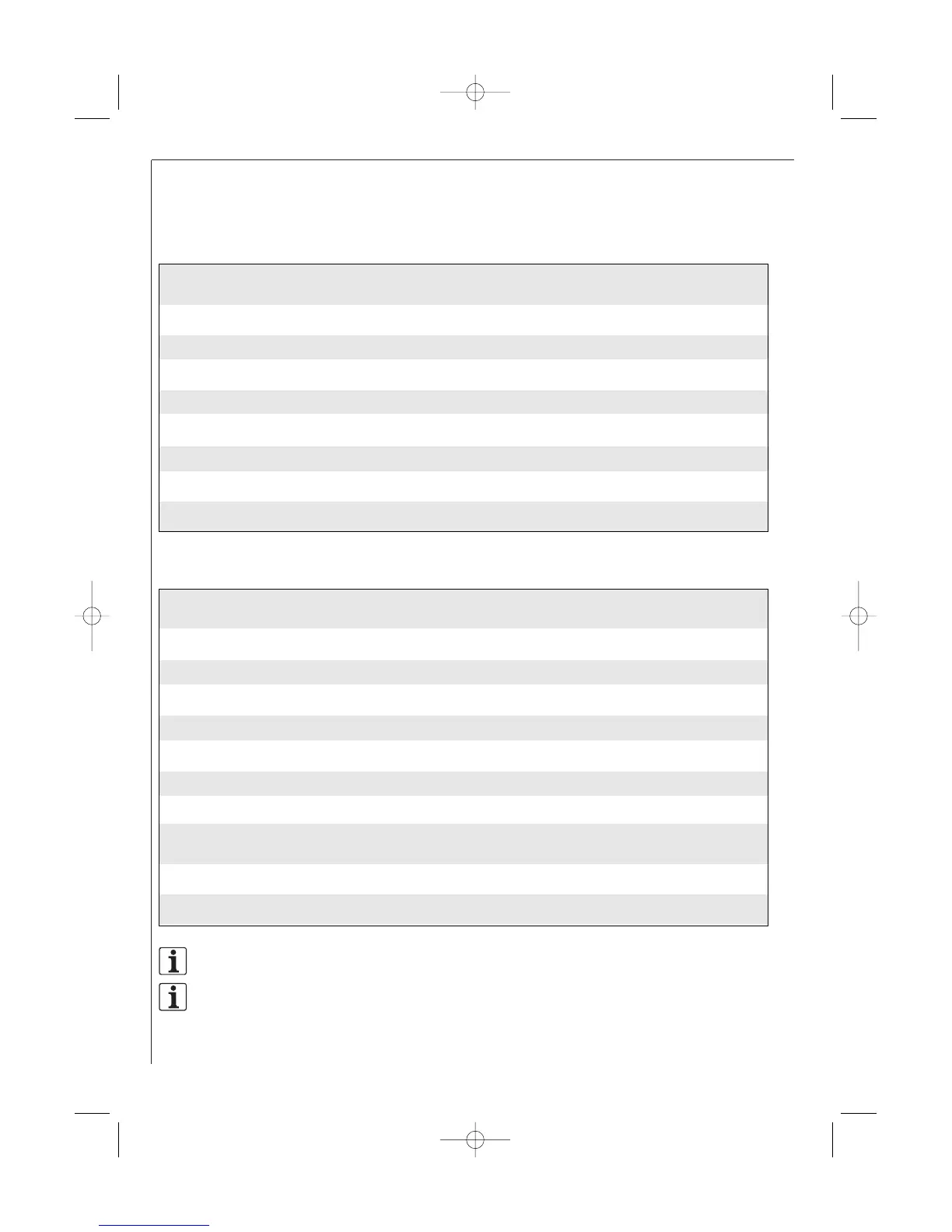 Unless otherwise stated, the settings given in the table are for use in a cold oven.