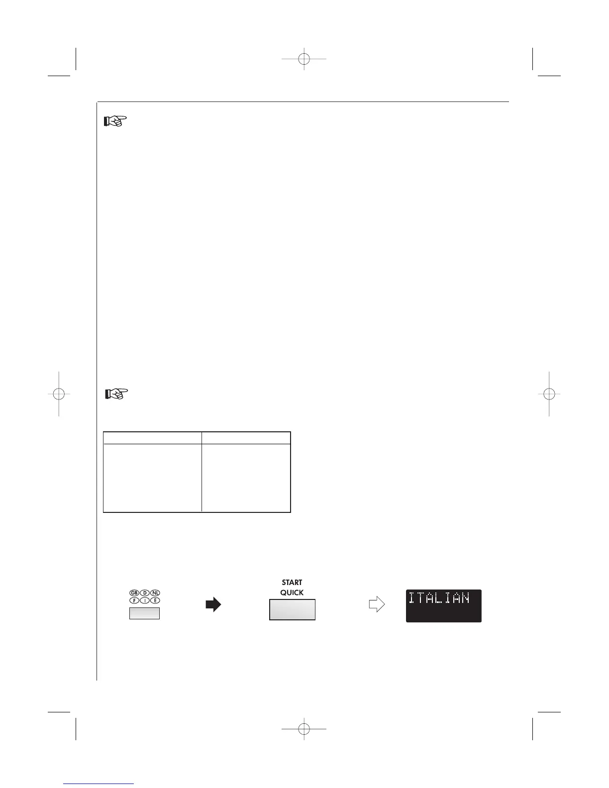 NOTE: The selected language will be memorised even if the electical power supply is interrupted.