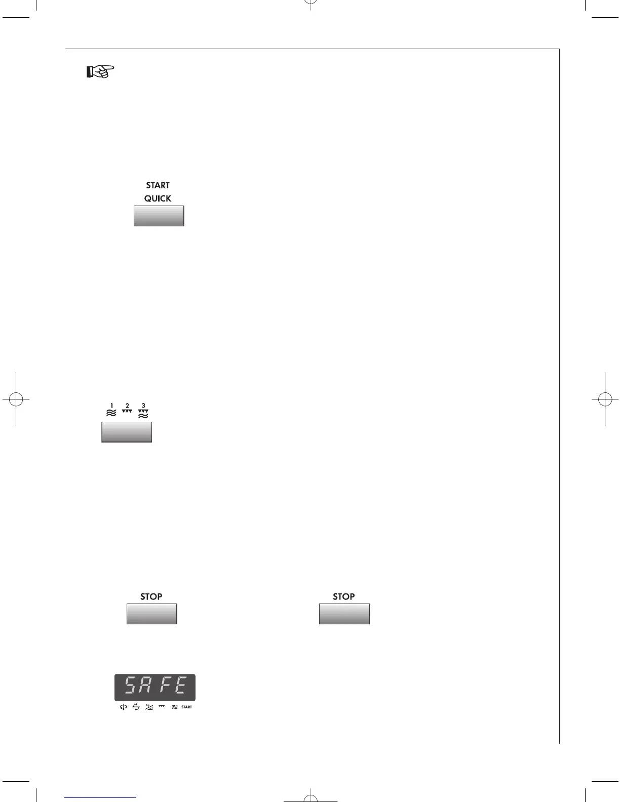 To avoid the misuse by children the START/QUICK button can be used only within 3 minutes after preceding