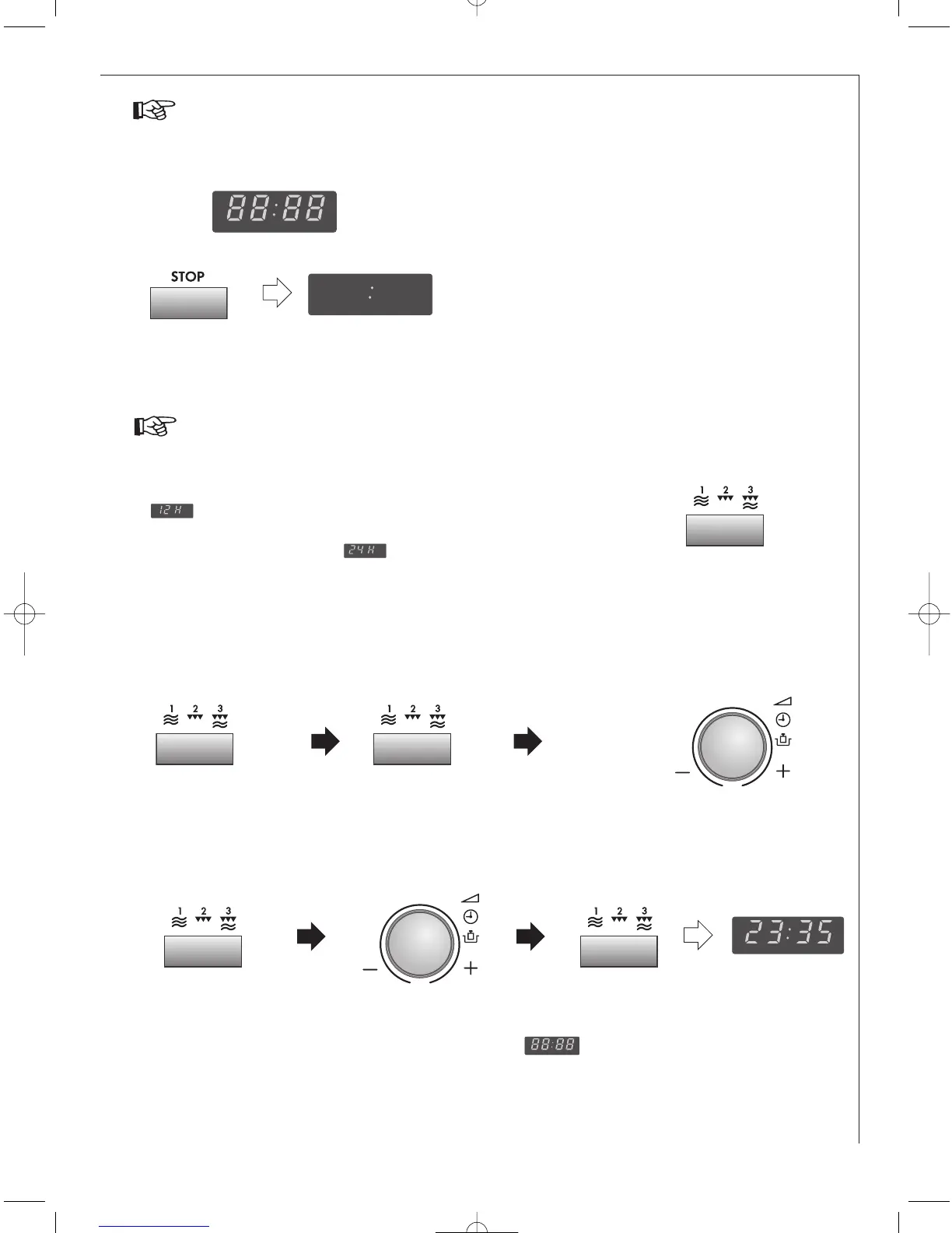 Example: To set the 24 hour clock to 23:35.
