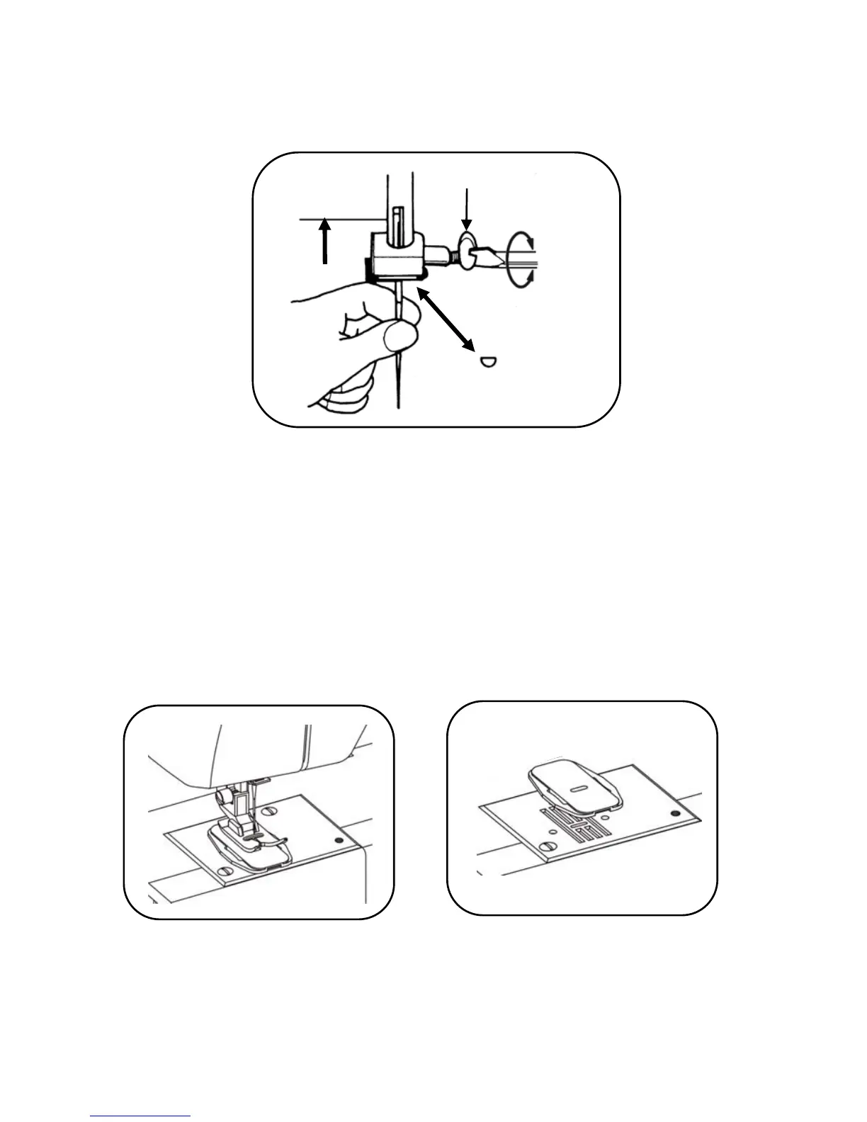 highest position and raise the presser foot over the needle plate, aligning two pins of the