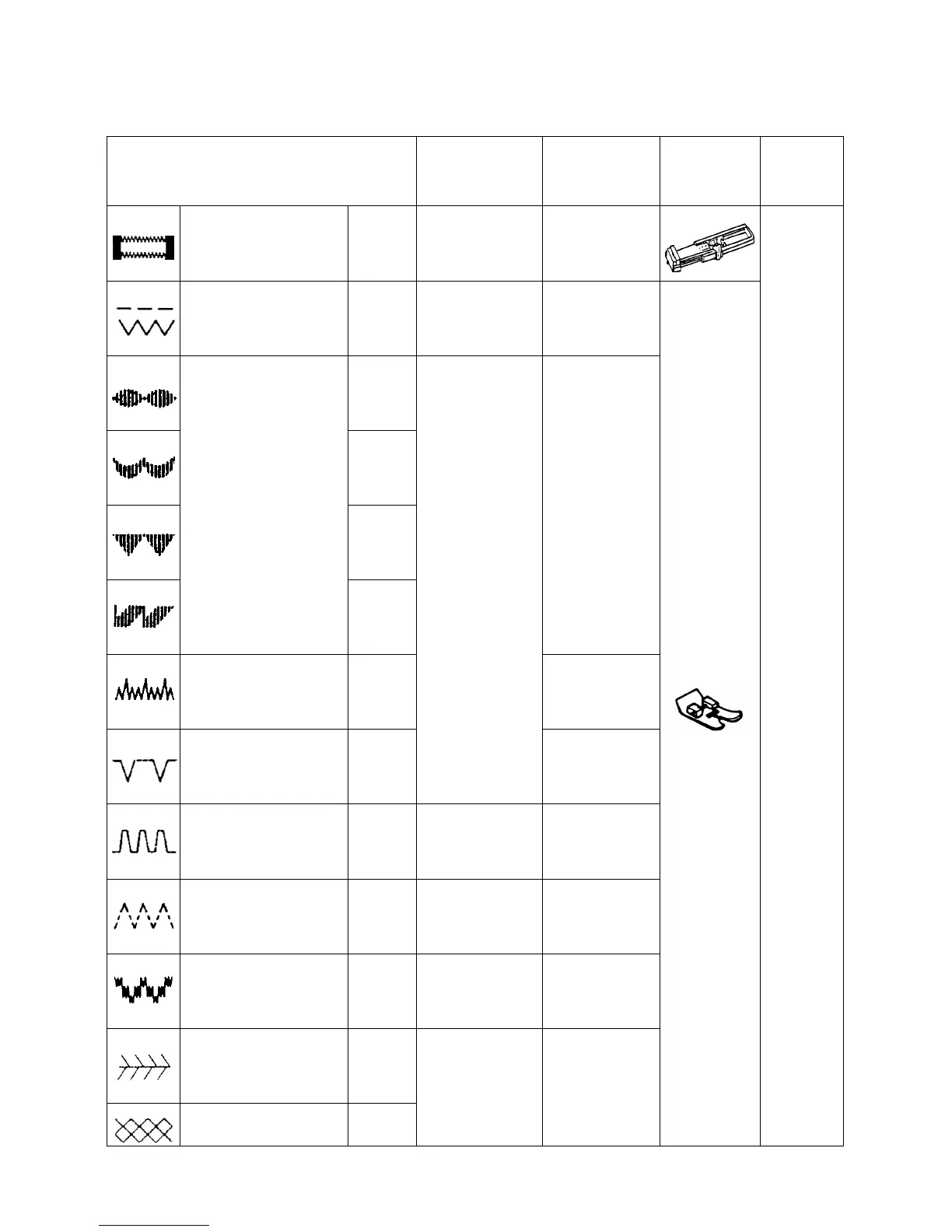 SEWING (PATTERN SELECTOR) AND OPERATING CHART