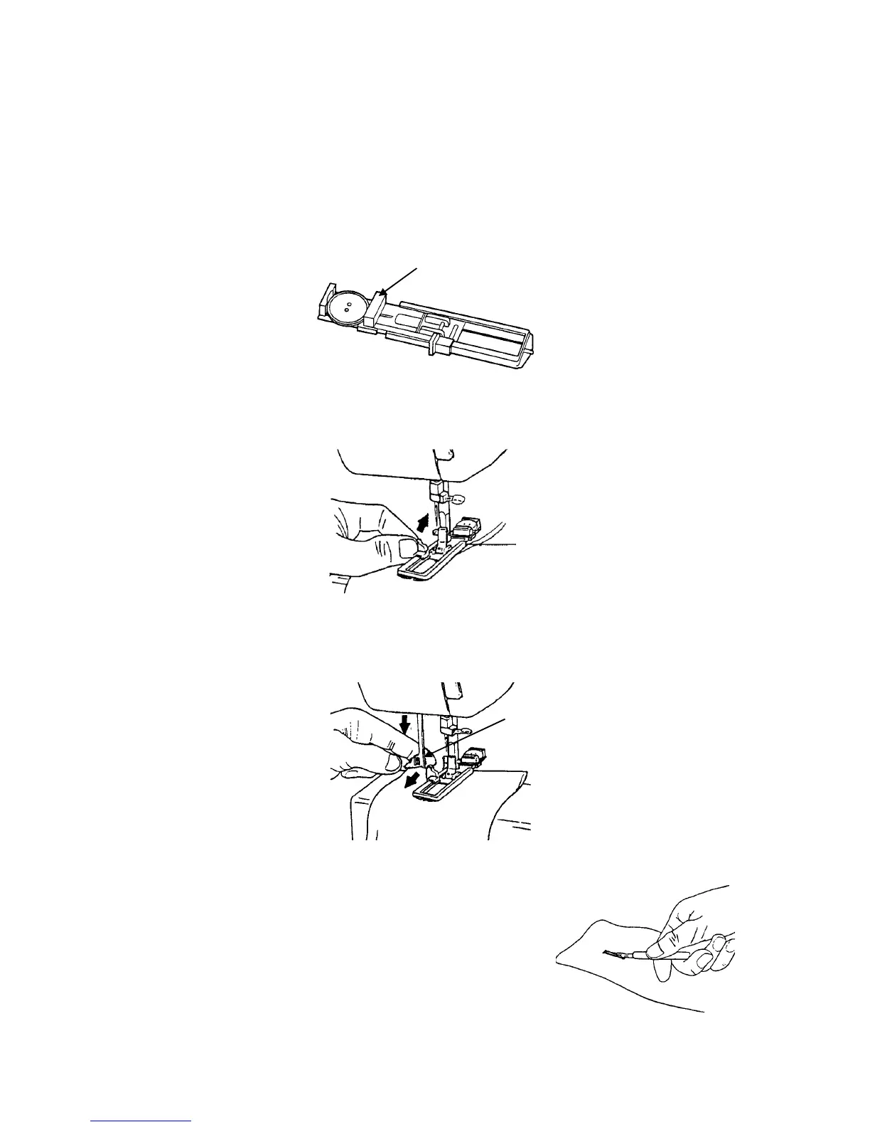 • Stecken Sie Ihren Knopf in die Öffnung des Füßchens und schieben Sie den beweglichen Teil an den Knopf heran.