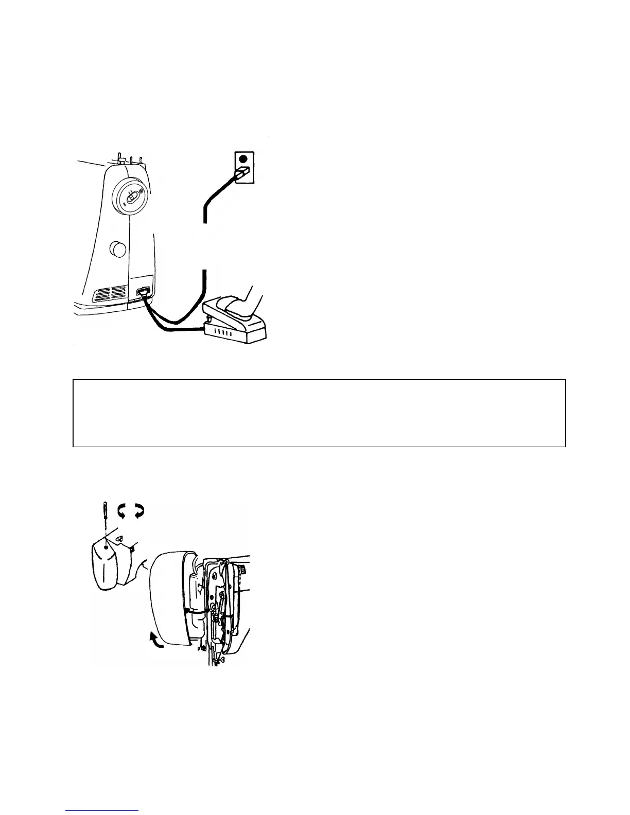 2. Sewing speed can be varied by the foot control. Use only the original