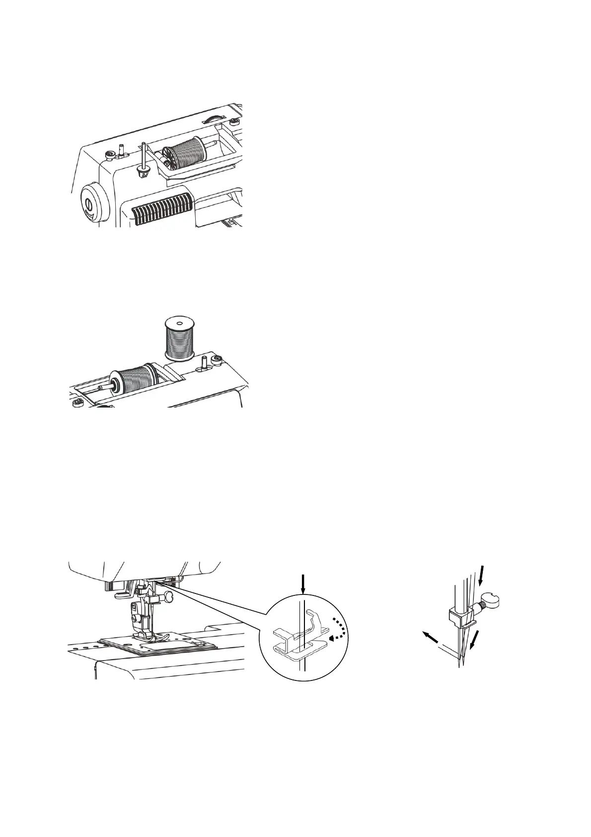 2. Place spools of thread on both spool pins and spool pin caps. (Pay