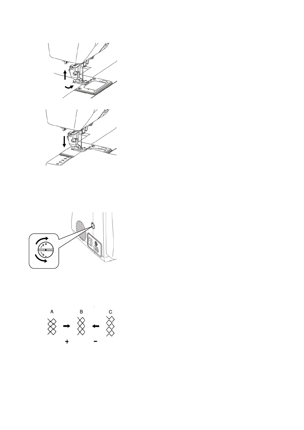 2﹒ If sew out the pattern is separates (C). Turn adjust dial to “-”