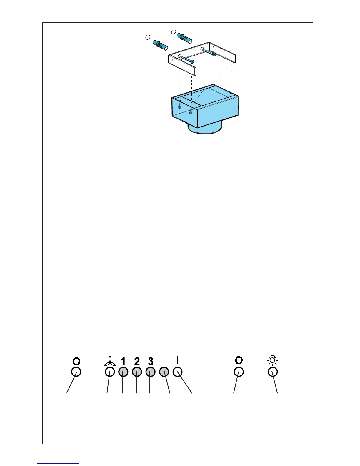 A: Main switch, hood on/off.