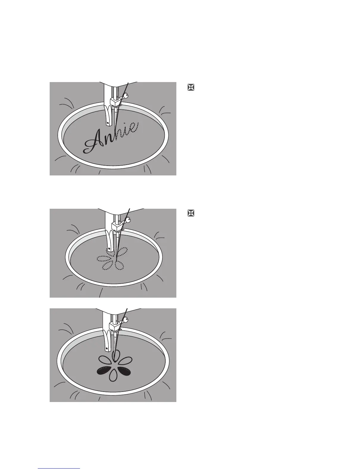 entlang nähen, indem der Stickrahmen