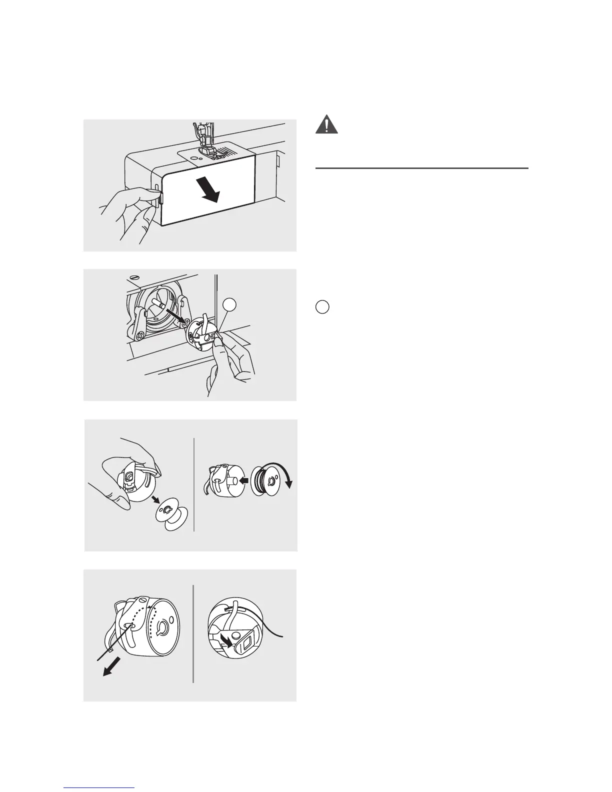 When inserting or removing the bobbin,