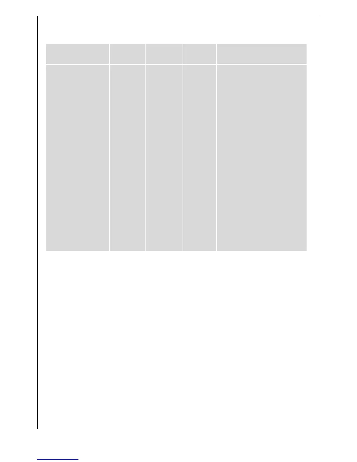 Unless otherwise stated, the settings given in the table are for use in
