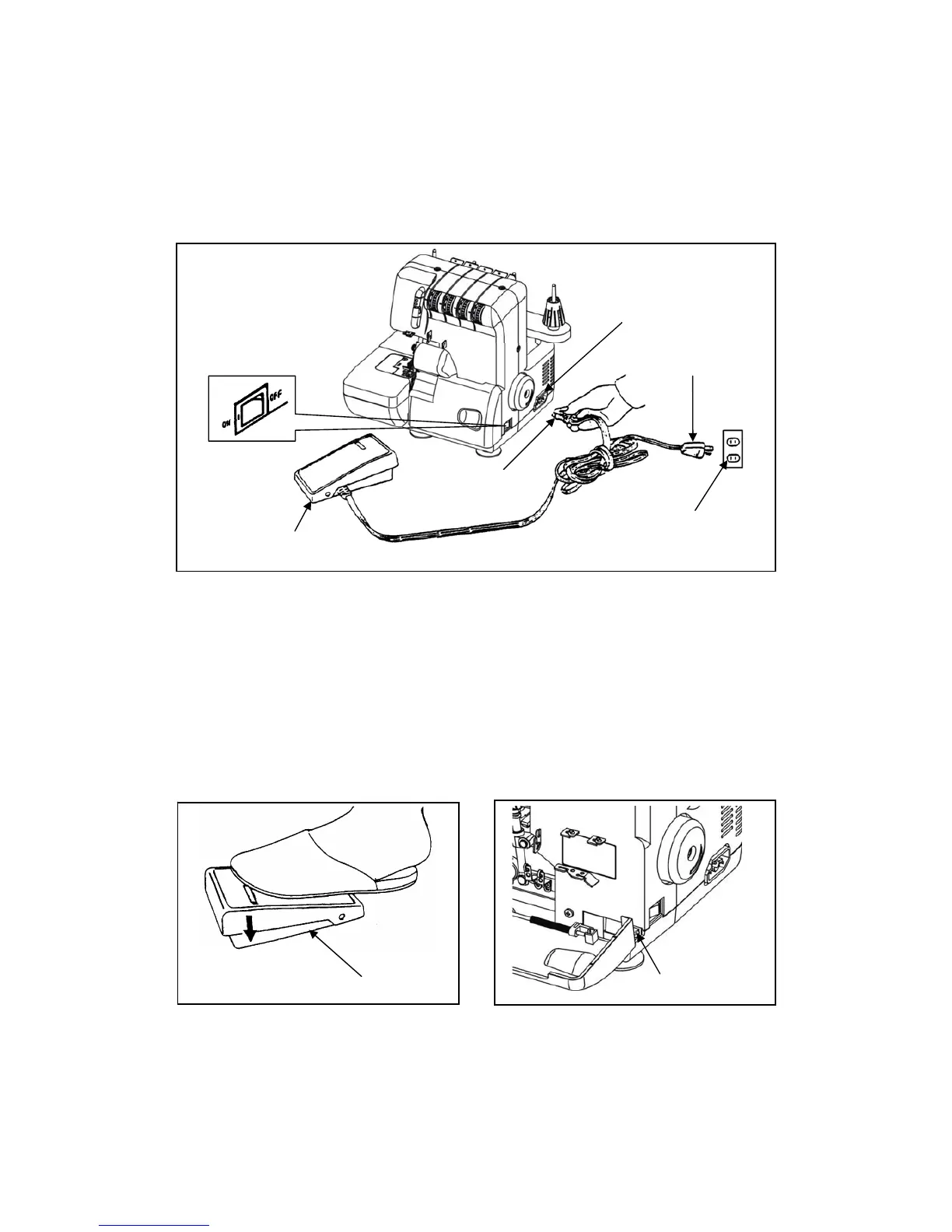 Introduire la prise du cordon pédale dans la machine. Enclencher l’interrupteur. Avec cet