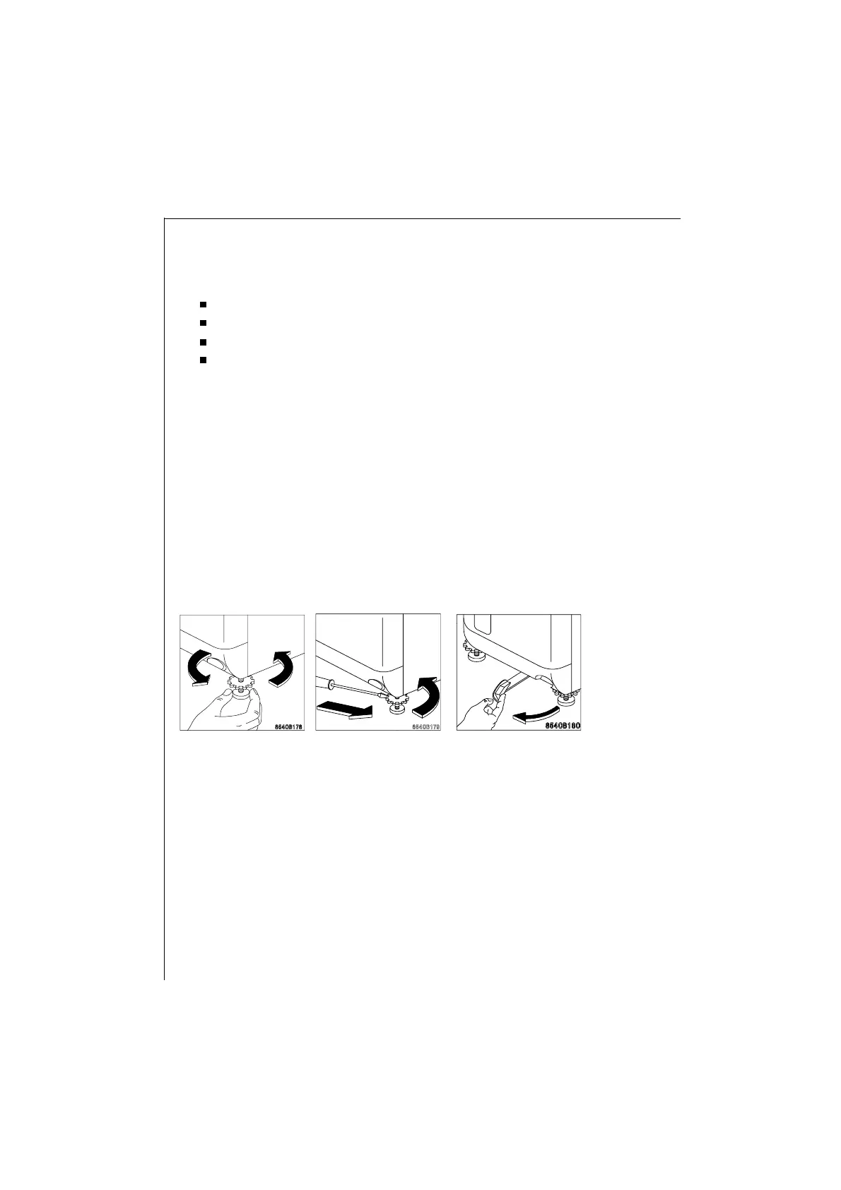 Level the washing machine by screwing the leveling screws in or out.