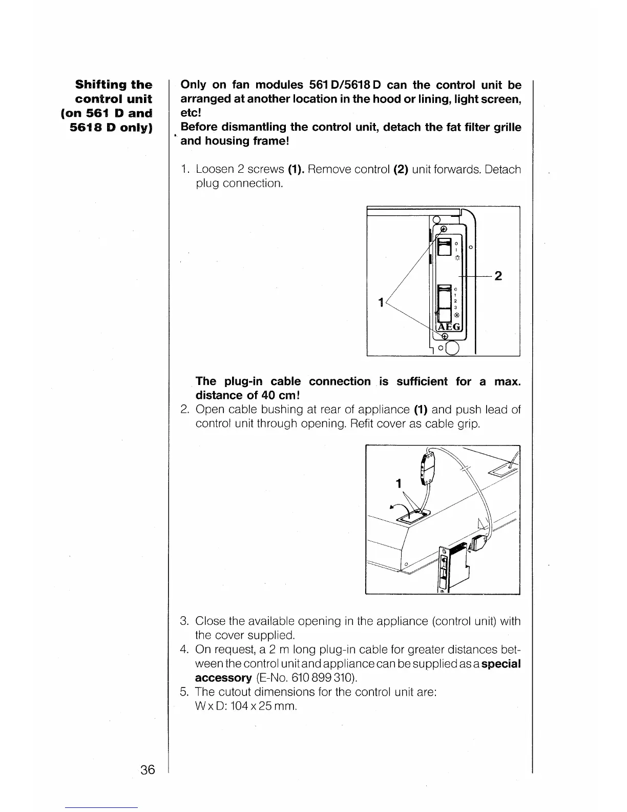 AEG 511 D - Shifting the Control Unit