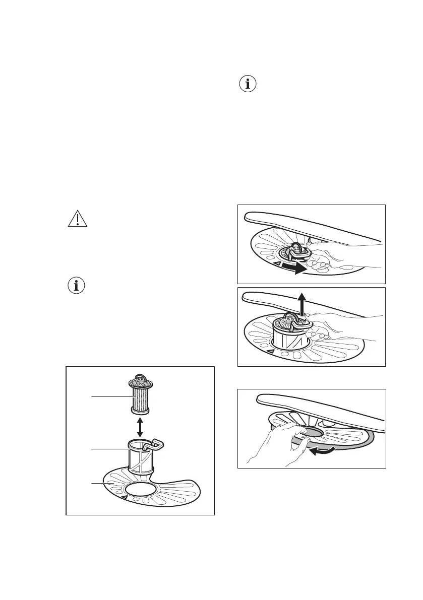1. Draai de filter (B) linksom en